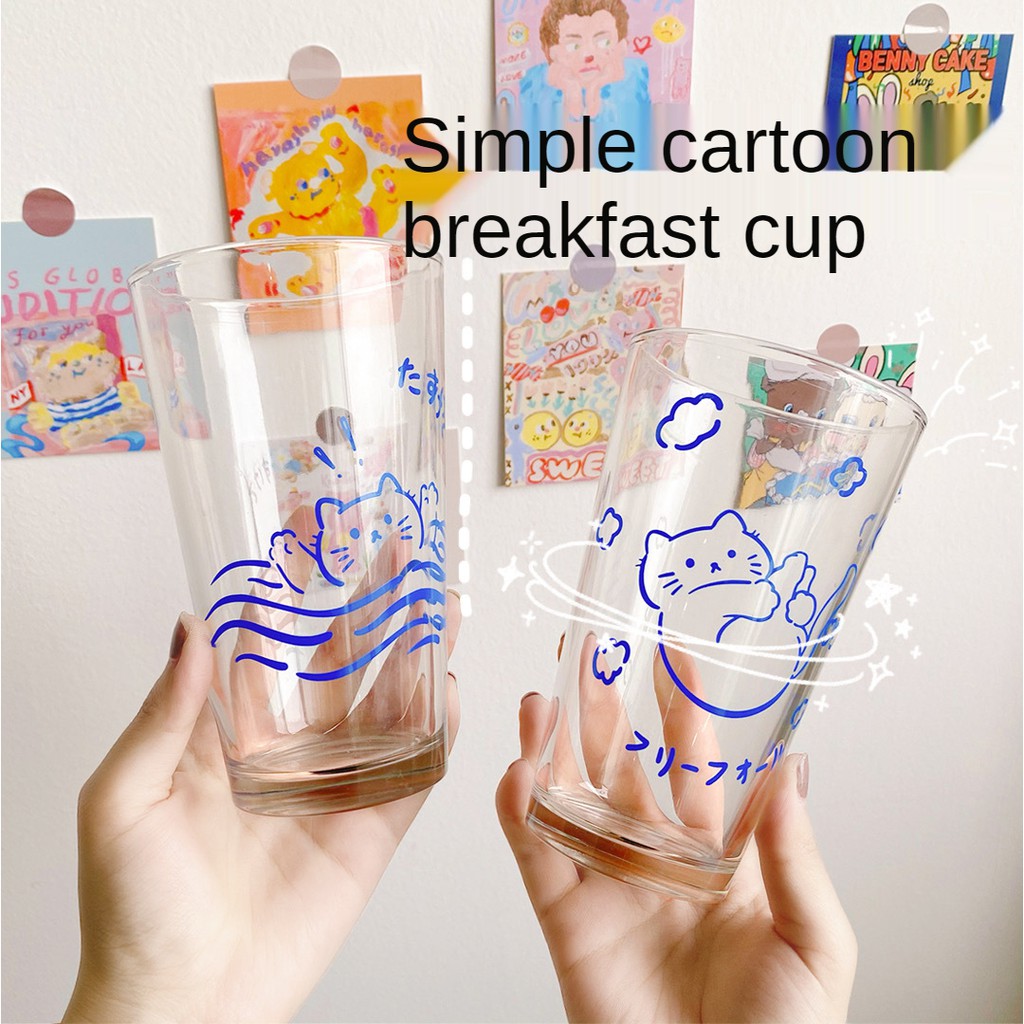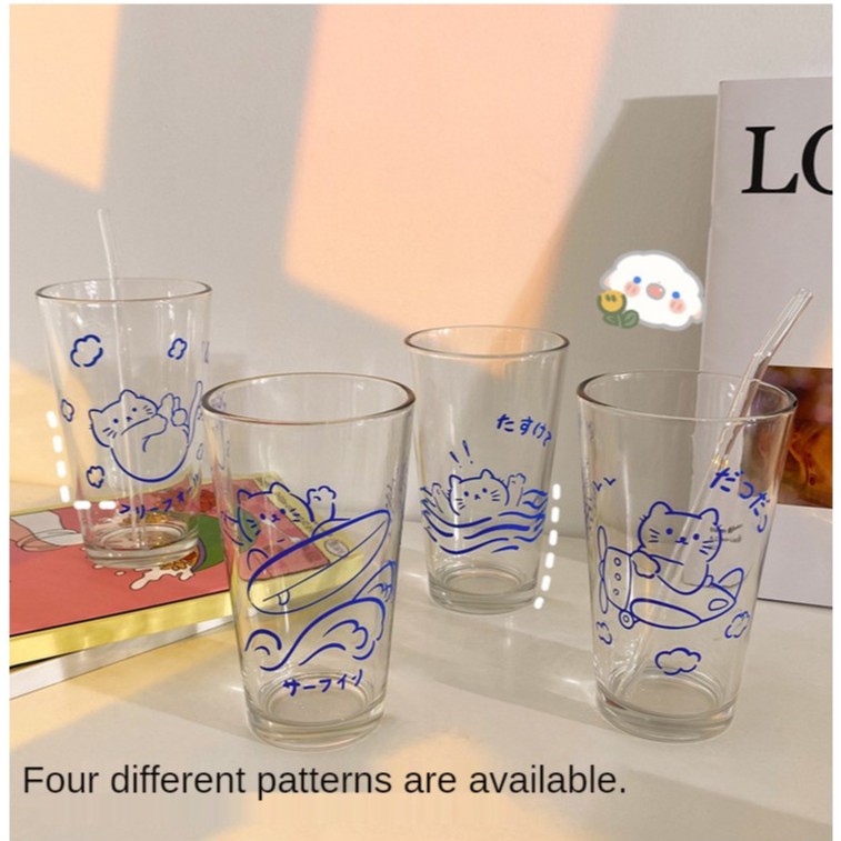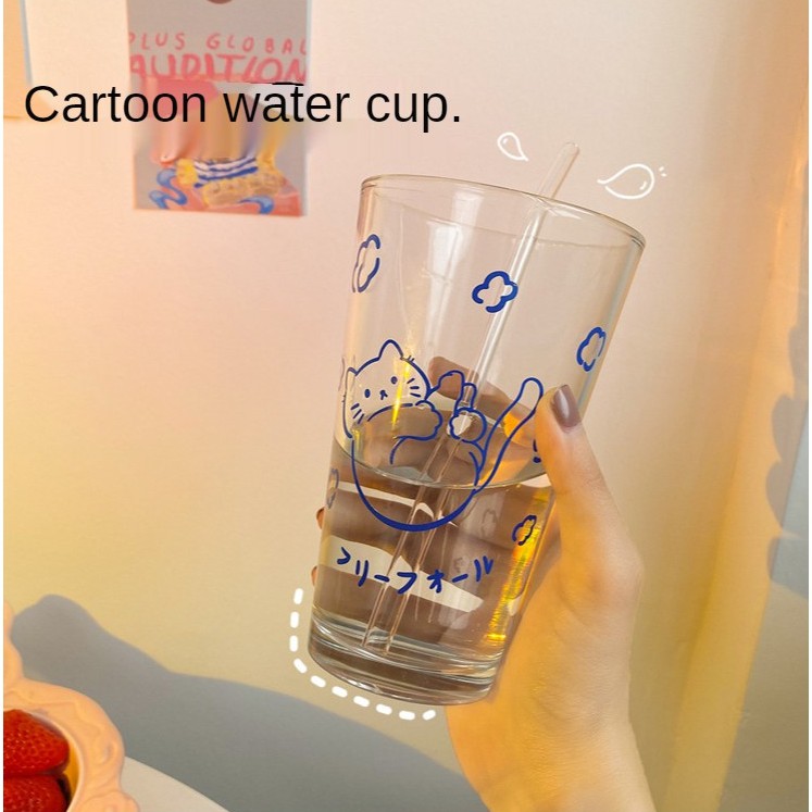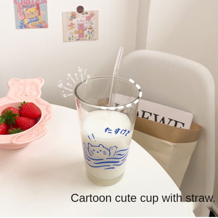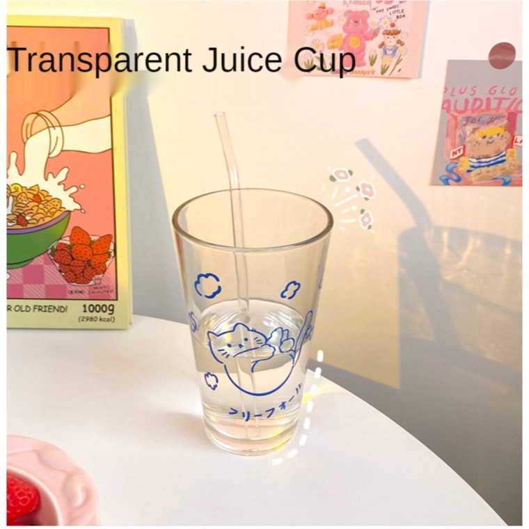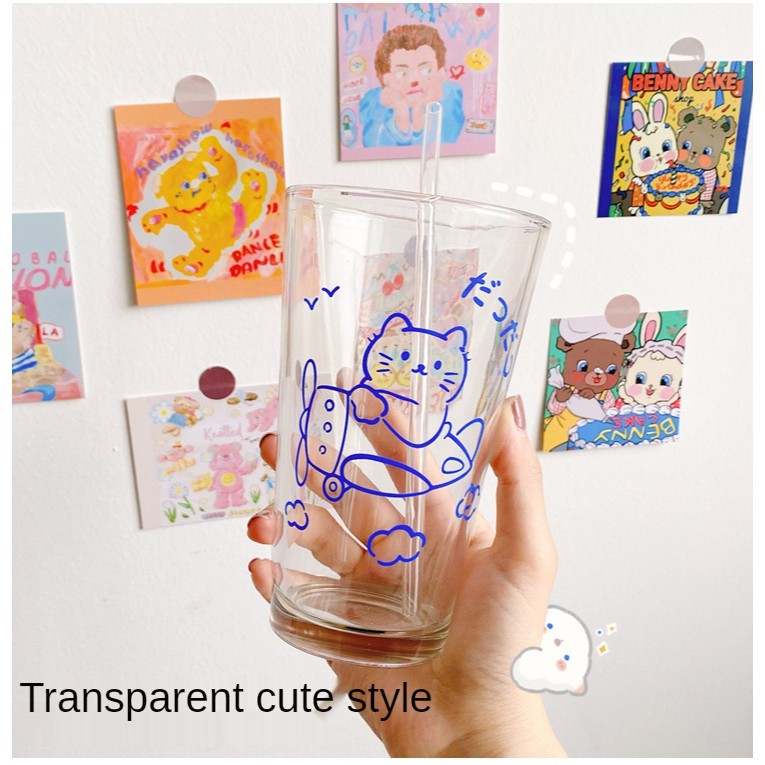 【SG Local Stock】500-600ML Glass Cup Transparent Cup with Straw Drinking Cup Home Milk Breakfast Cup