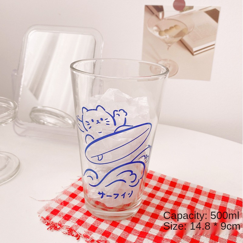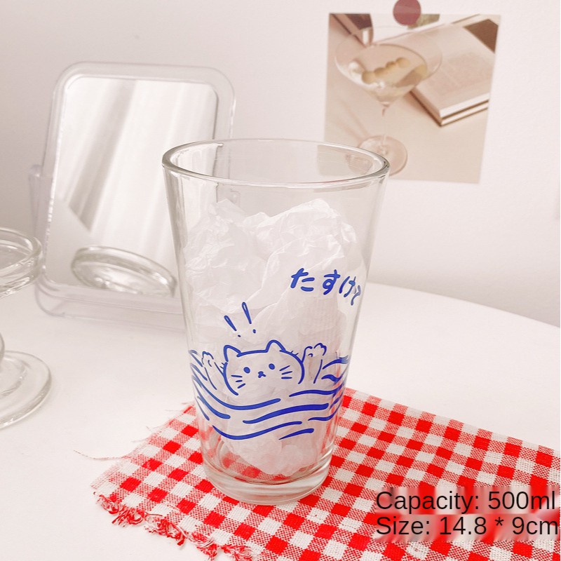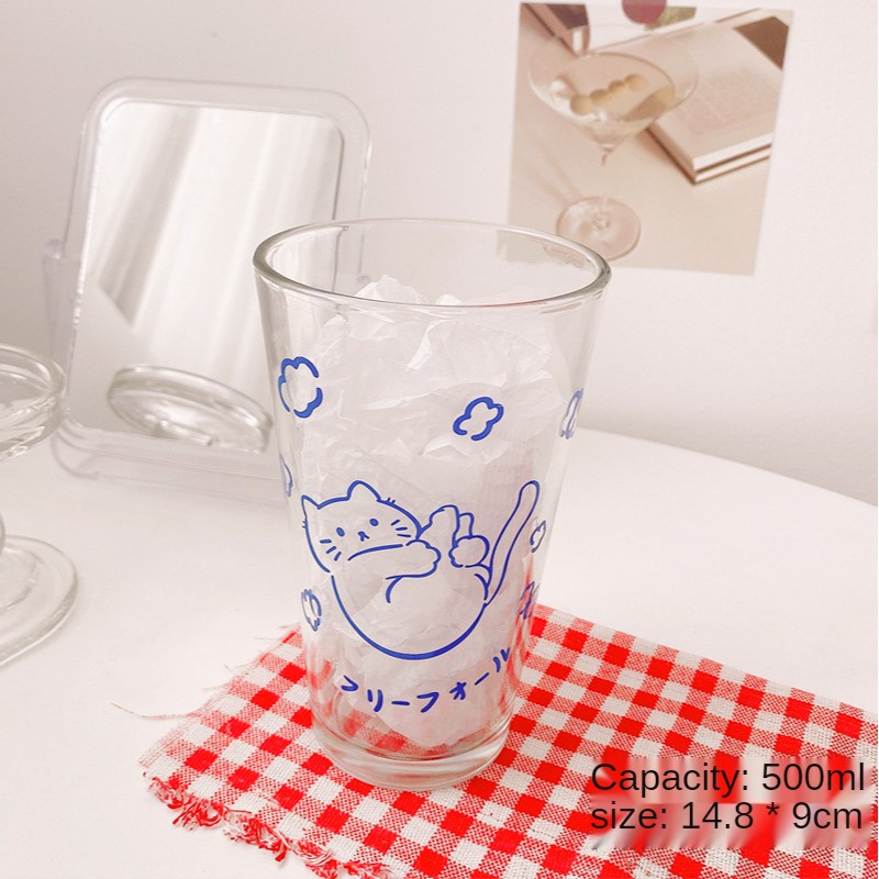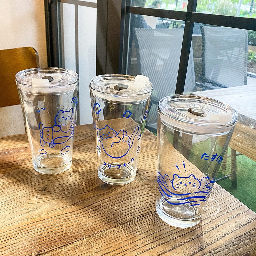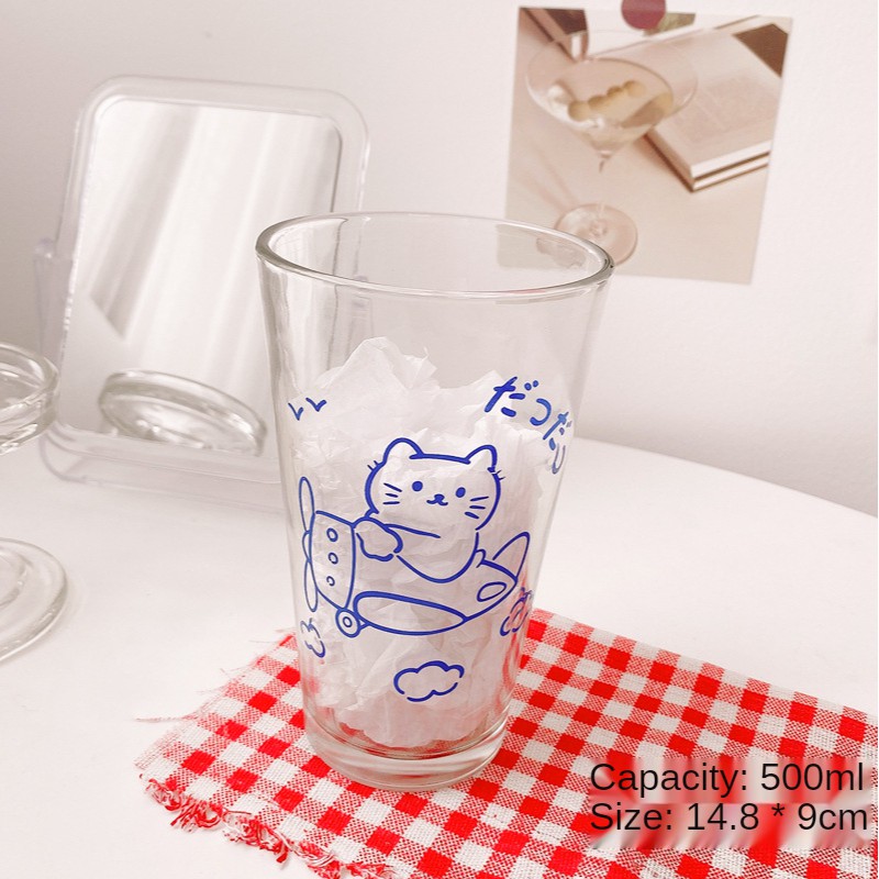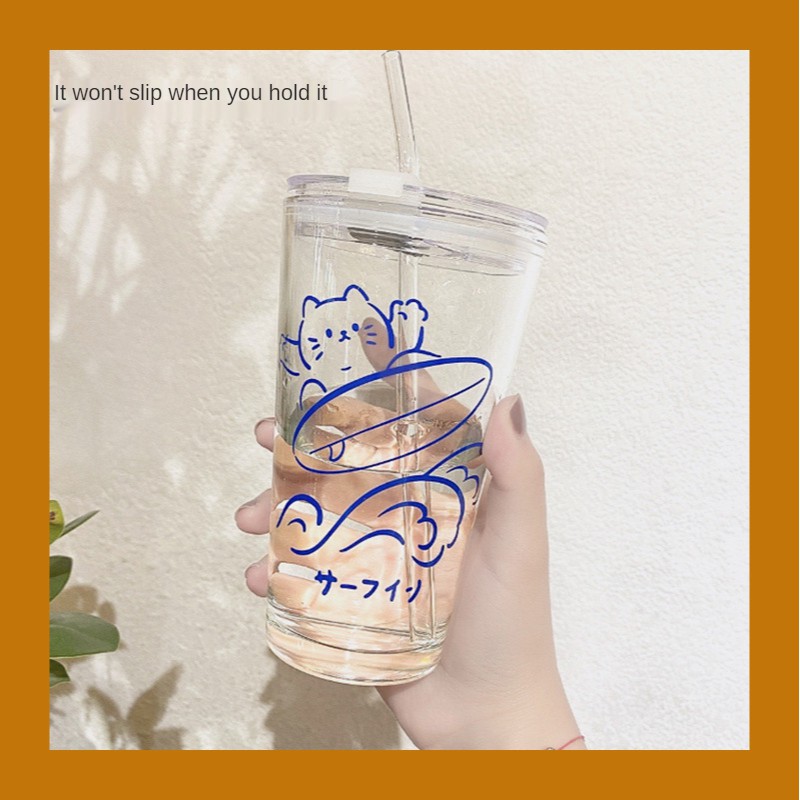 【SG Local Stock】500-600ML Glass Cup Transparent Cup with Straw Drinking Cup Home Milk Breakfast Cup