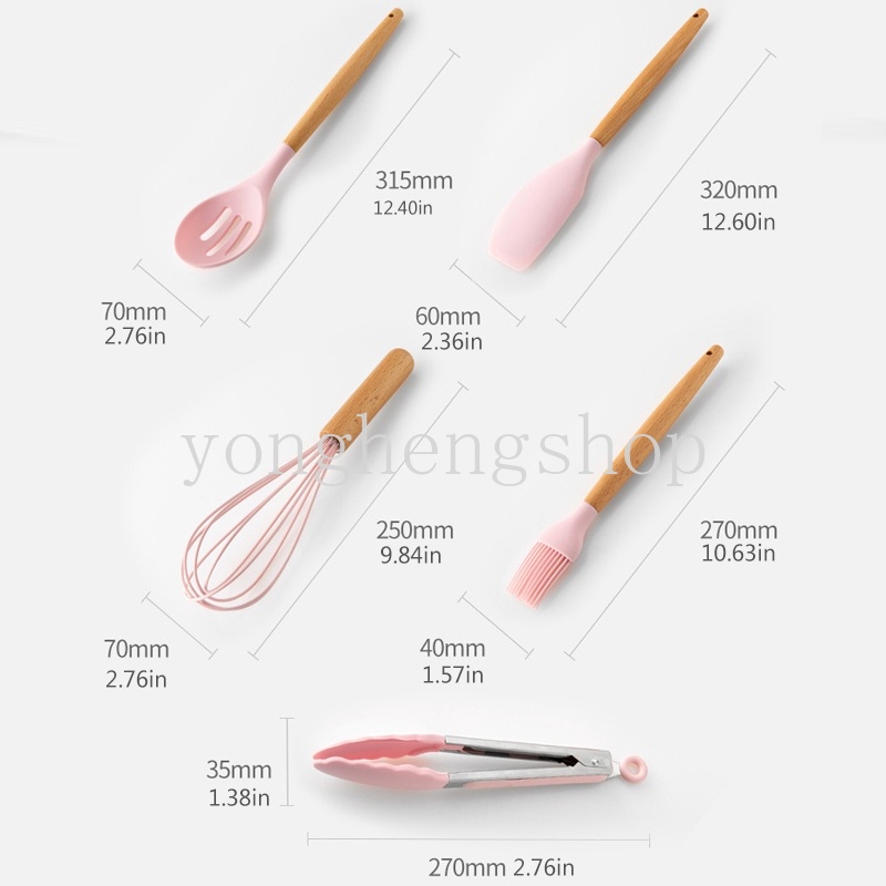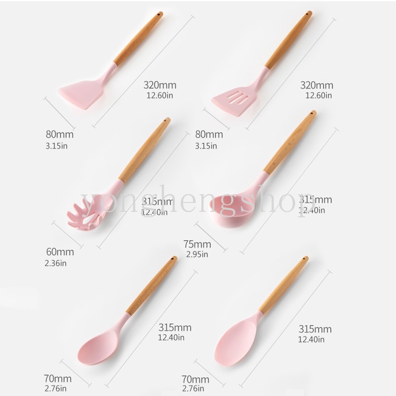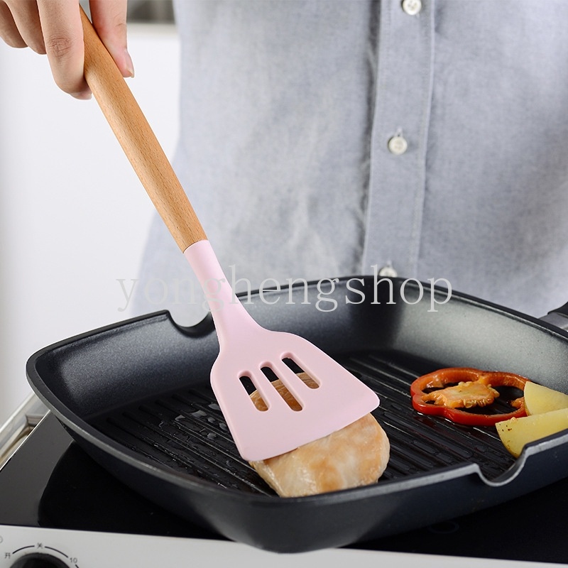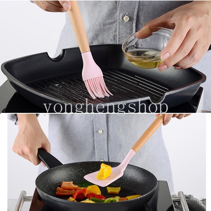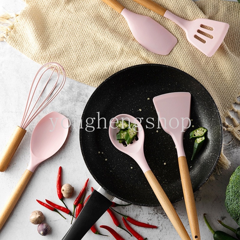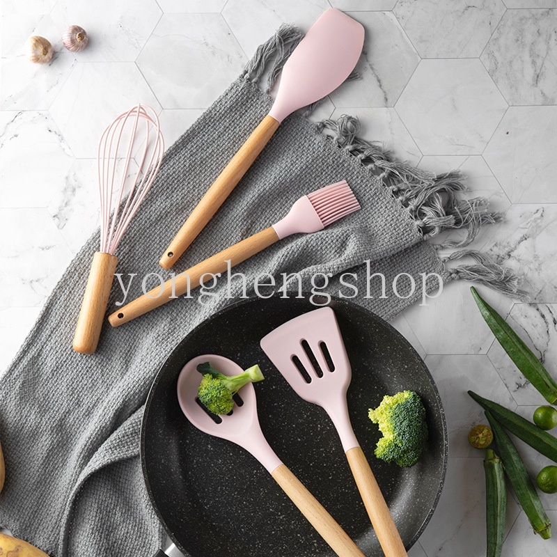 Creative Wooden Handle Non-Stick Silicone Kitchenware Pink Soup Spoon Spatula Brush Scraper Pasta Egg Beater Kitchen Cooking Tool