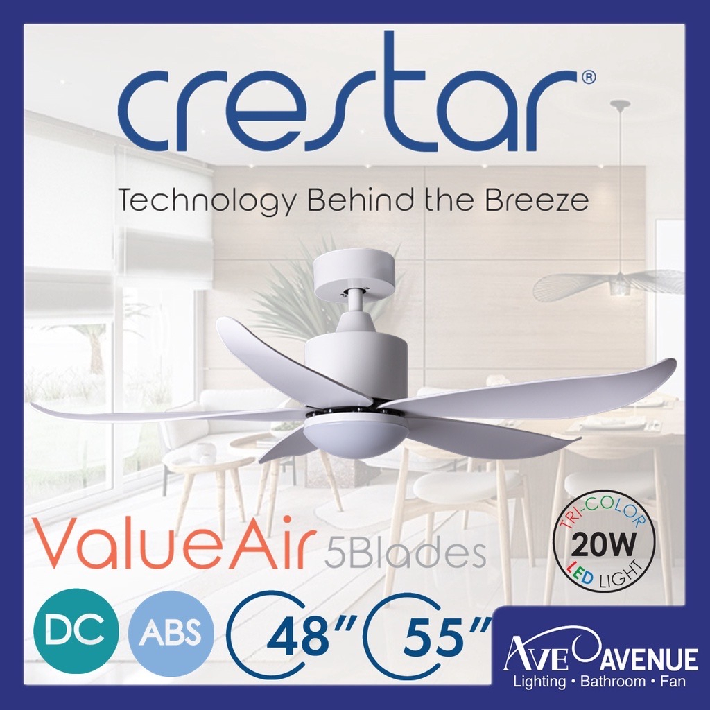 Crestar Value Air 48 / 55 Inch 5 Blades Ceiling Fan With 3-Tone LED Light And Remote Control