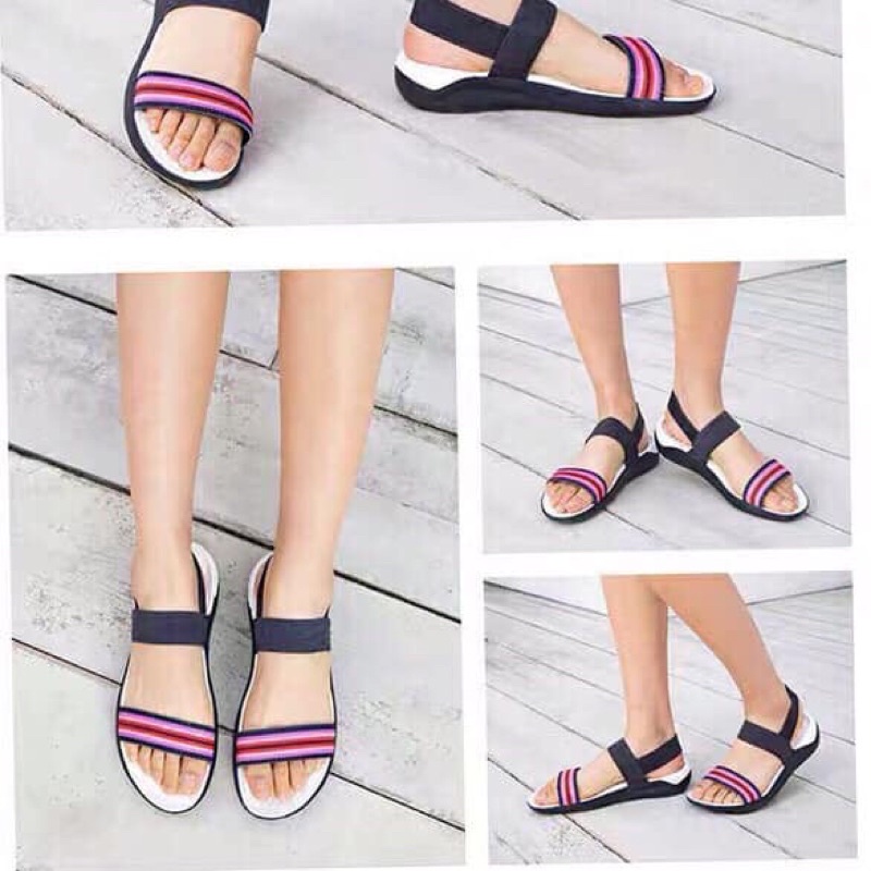 Literide Women's Cross Sandal Navy Horizontal Stripes