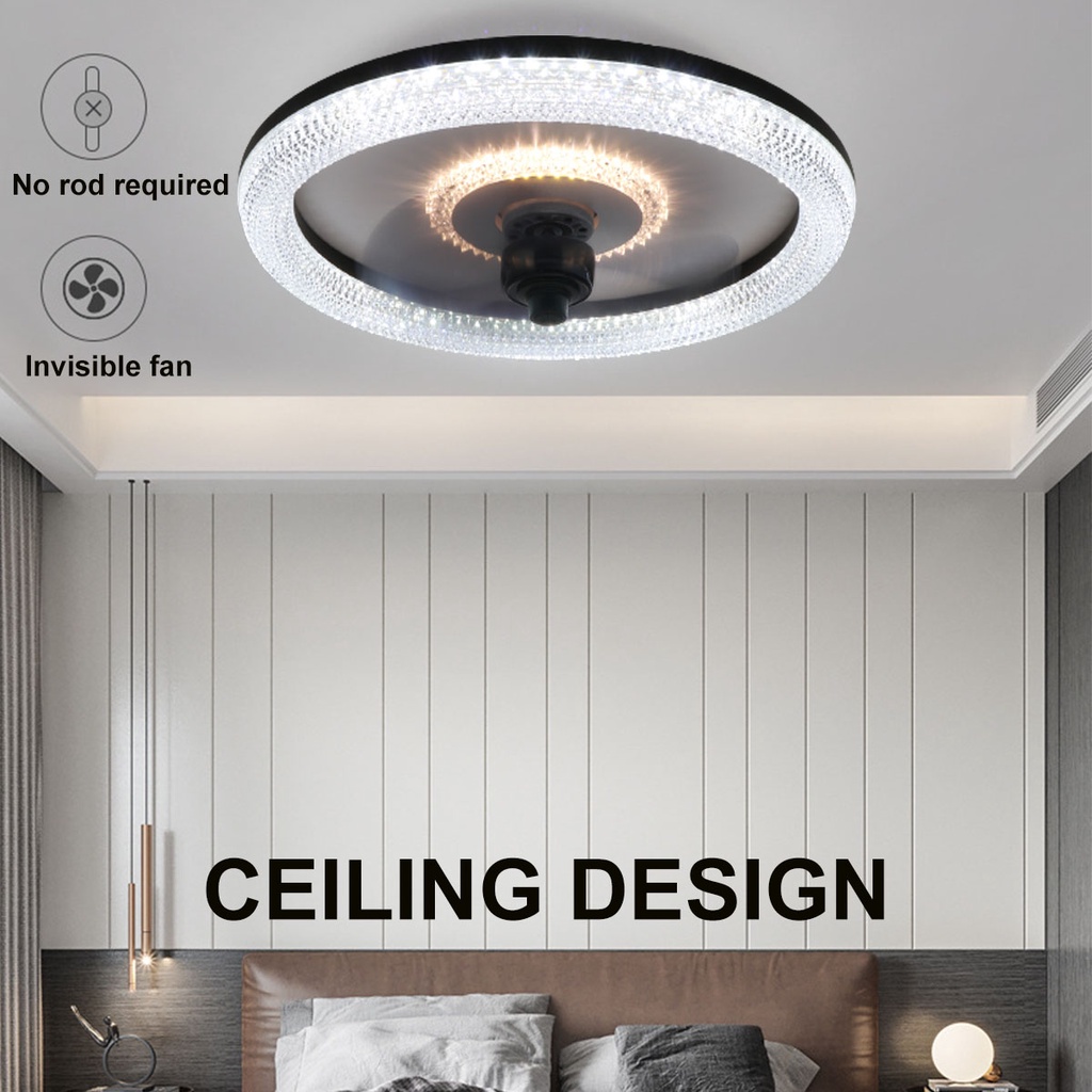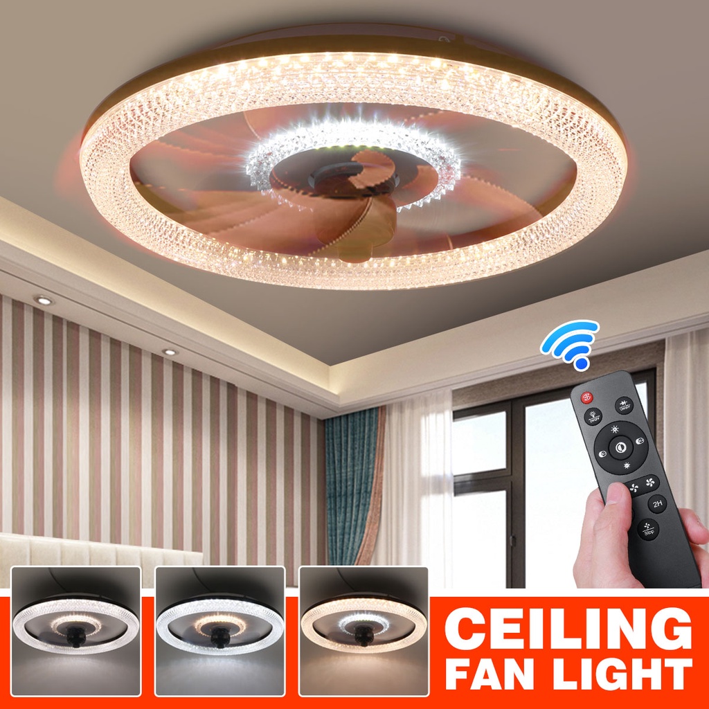 Crystal Led Ceiling Fan Light Ceiling Fan with Lights 48cm WiFi Remote Control Modern Lighting three-color Dimming Ceiling Light