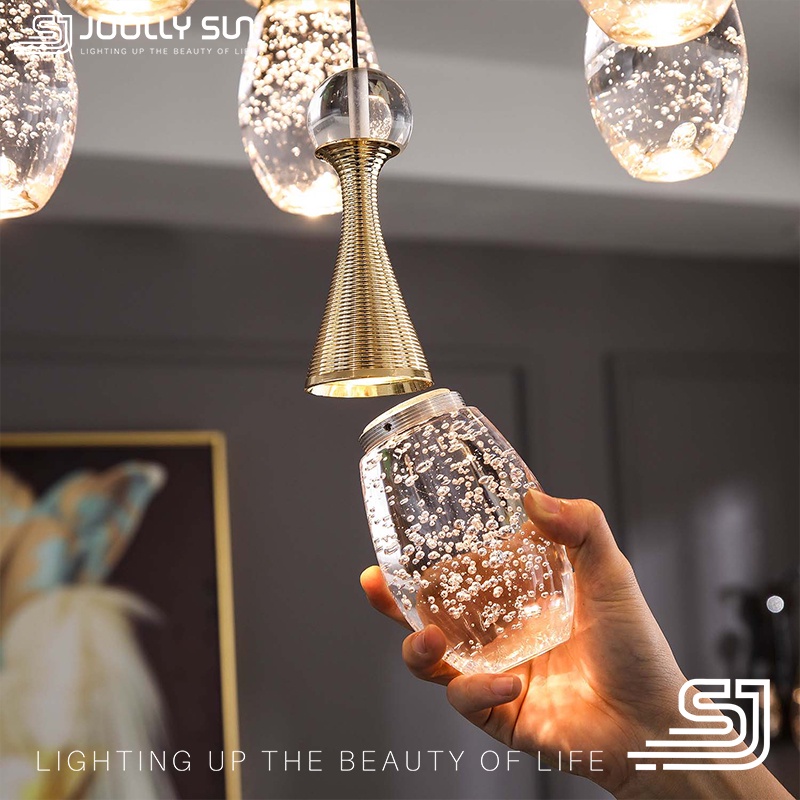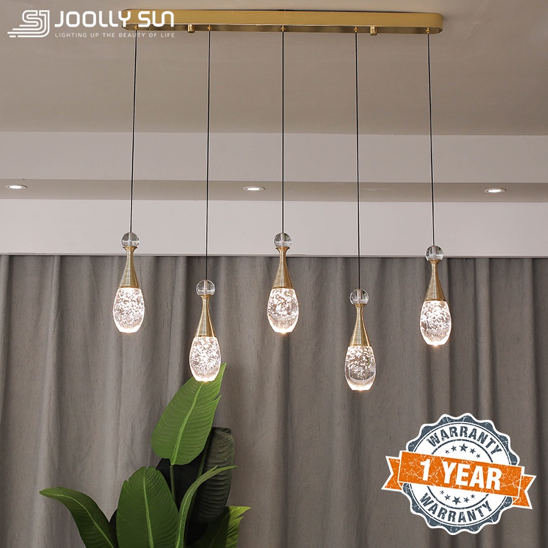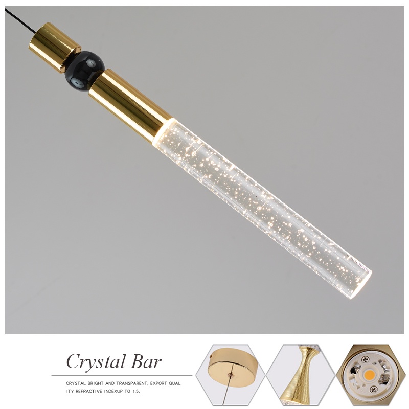 Crystal Pendant Light Dining Room LED Ceiling Hanging Lights Modern for Kitchen Island Living Room Over Dining Table Long Base
