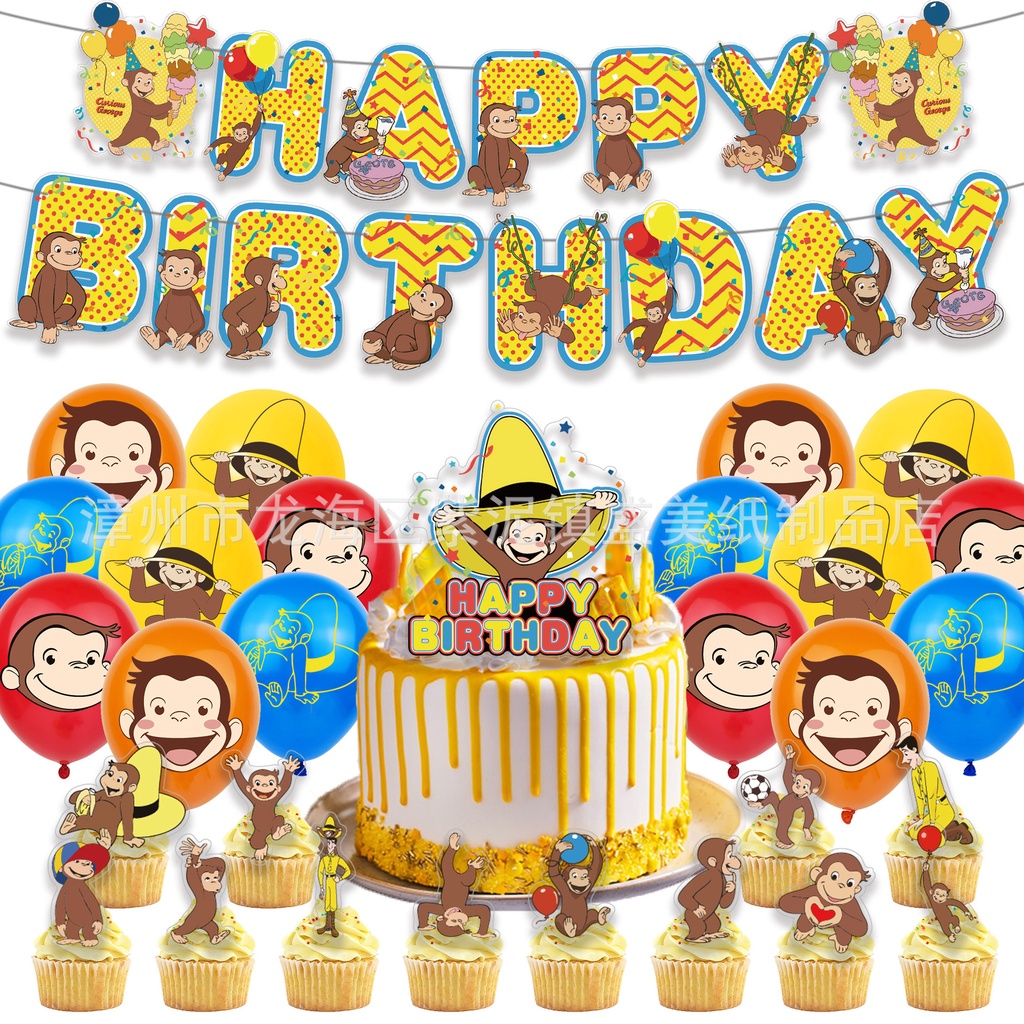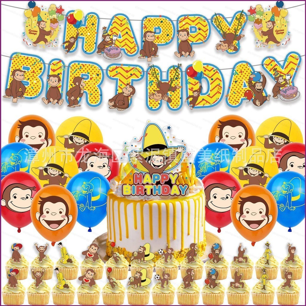 Curious George Theme kids birthday party decorations banner cake topper balloon set supplies