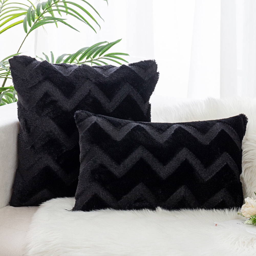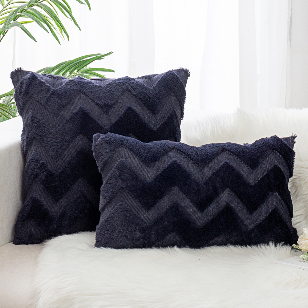 Cushion Pillow Plush Wave Pattern Pure Color Cushion Cover