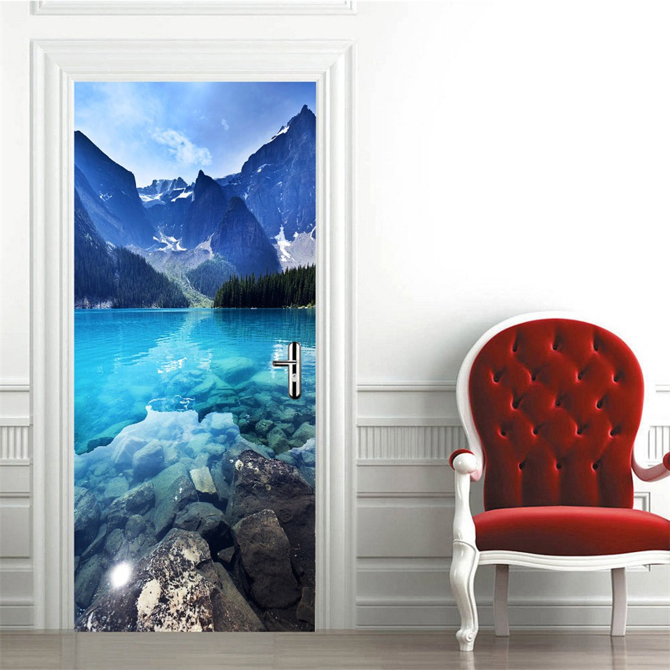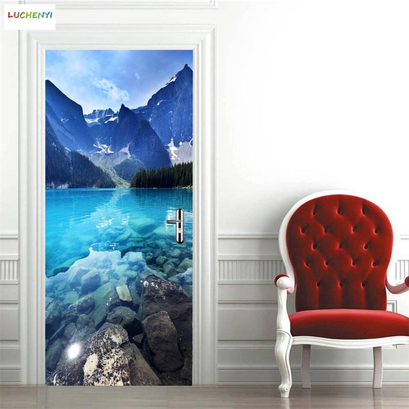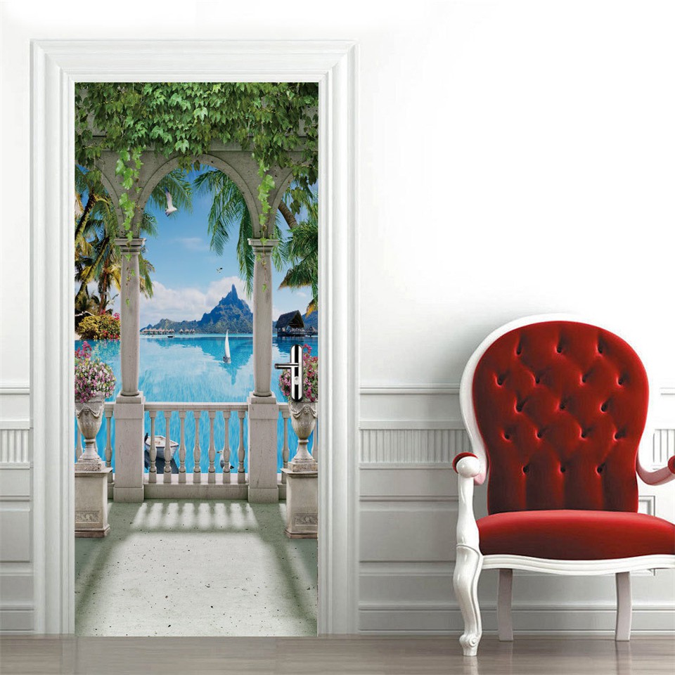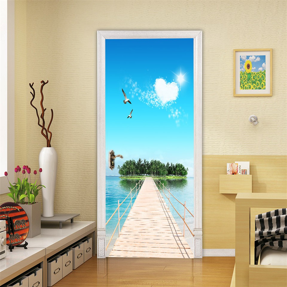 Custom 3D Wallpaper For Door Sticker Self-adhesive DIY Poster Beach Sea Scenery Mural Home Design Door Decoration Decal fridge stickers