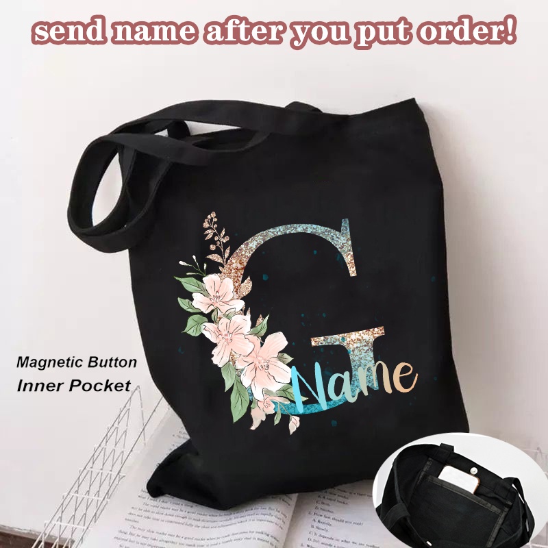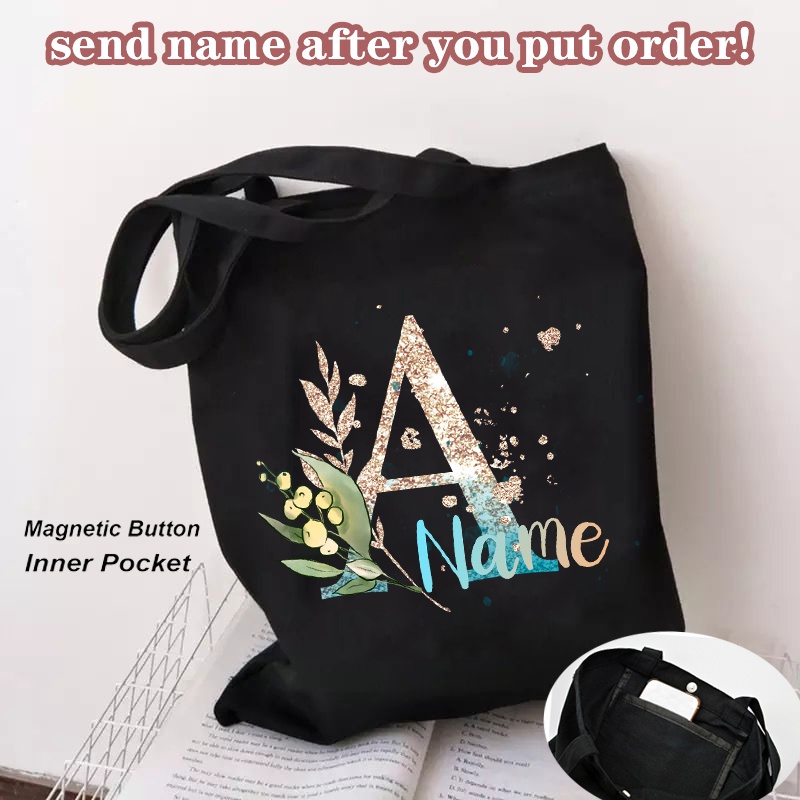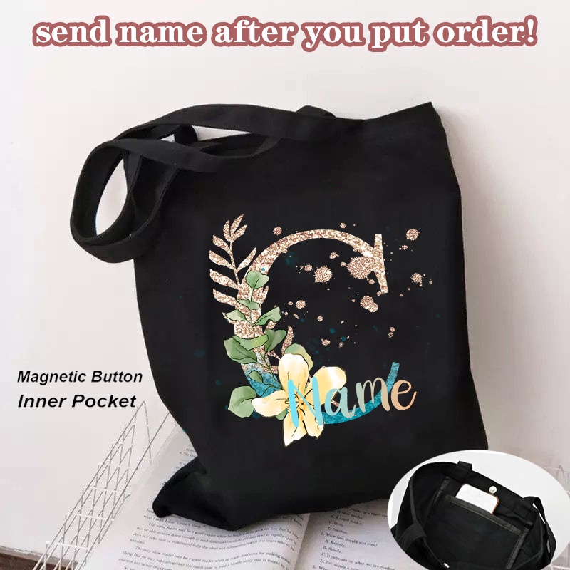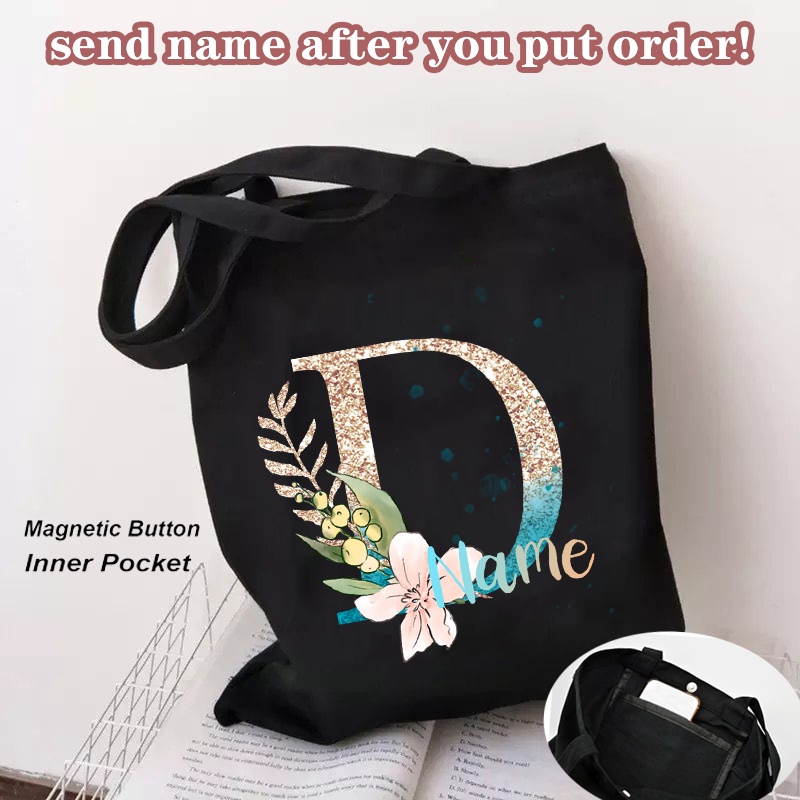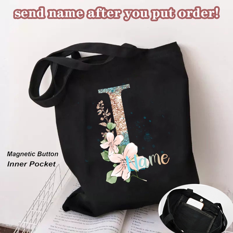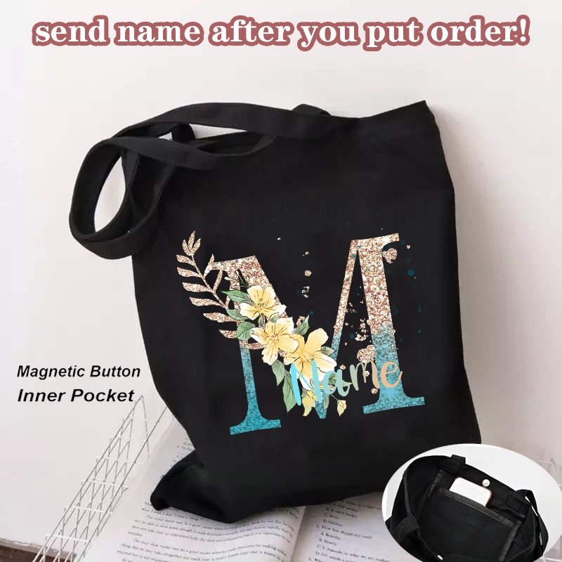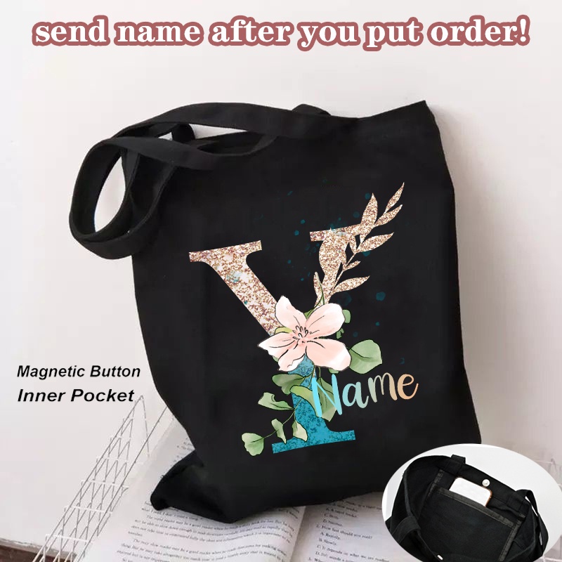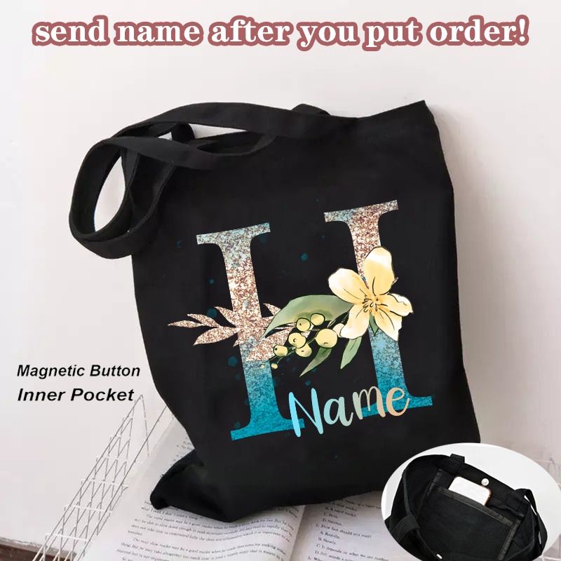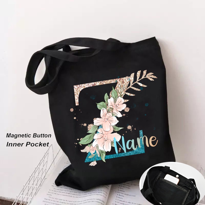 Custom Your Name Fashion Women Tote Bags Personalised Canvas Handbags Shoulder Bags with Button Birthday Gift