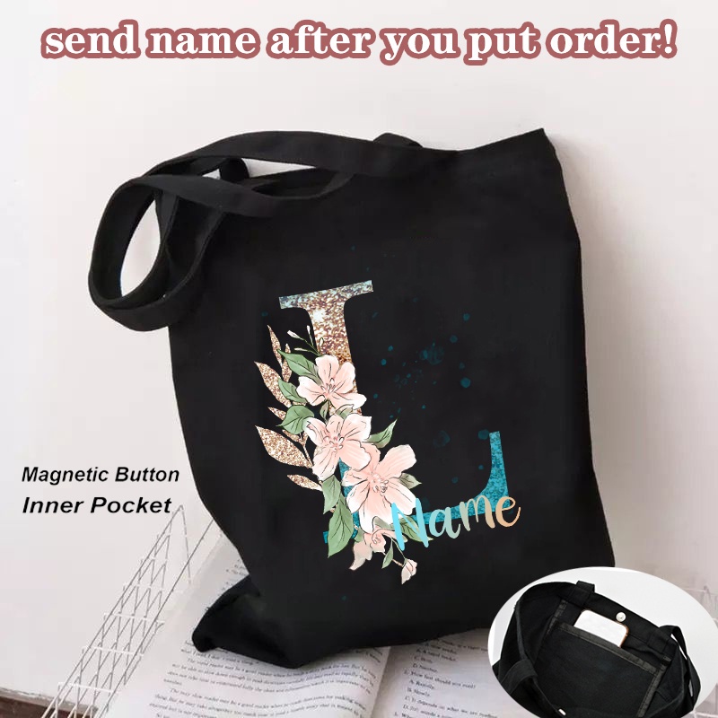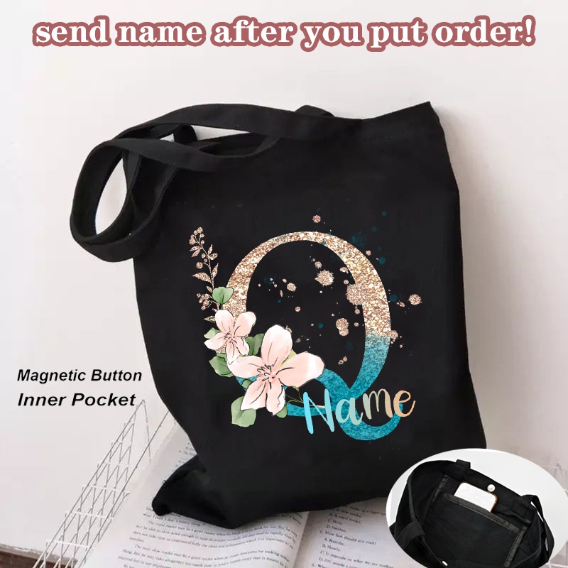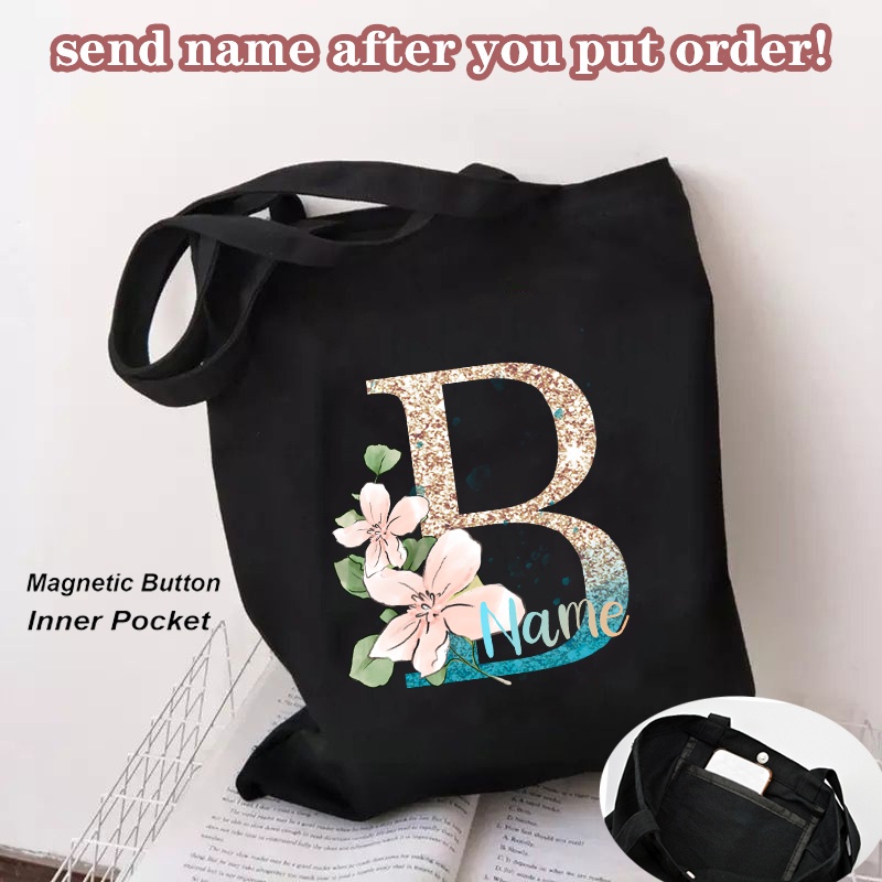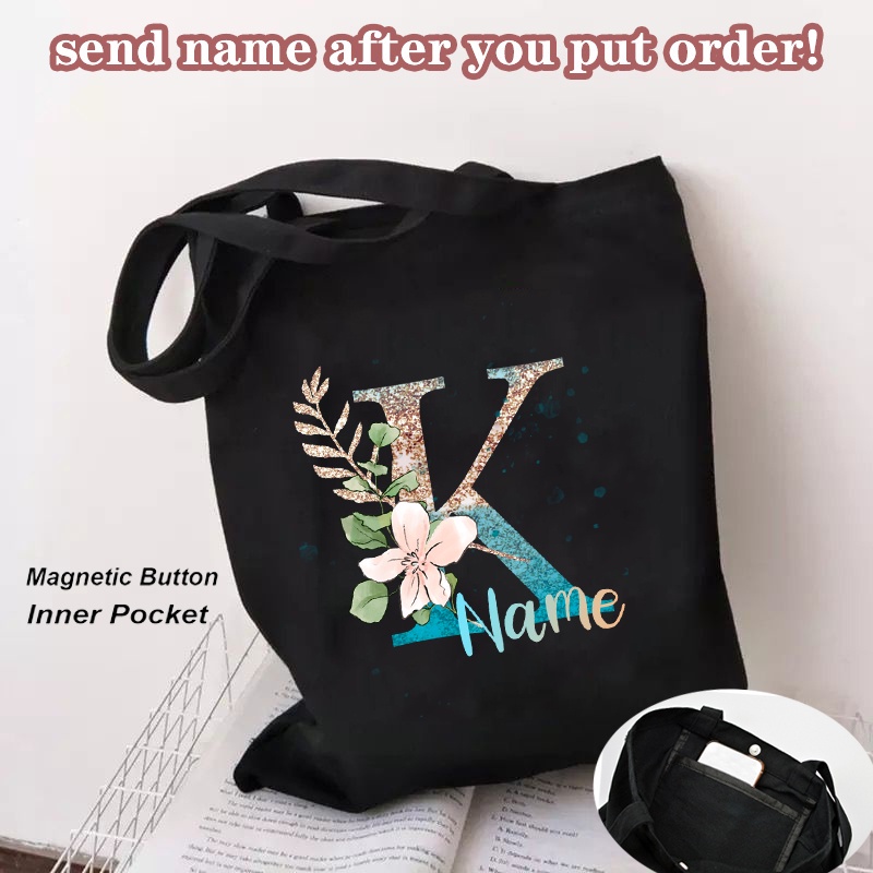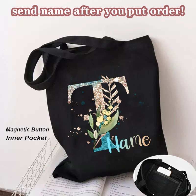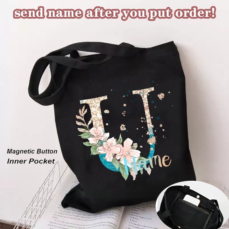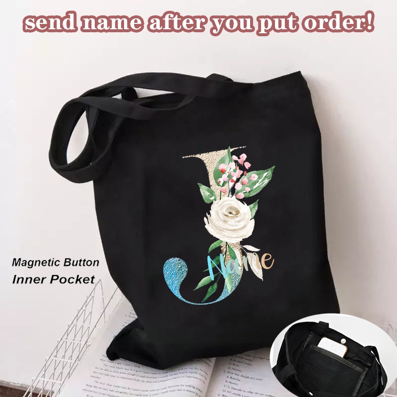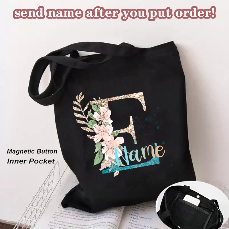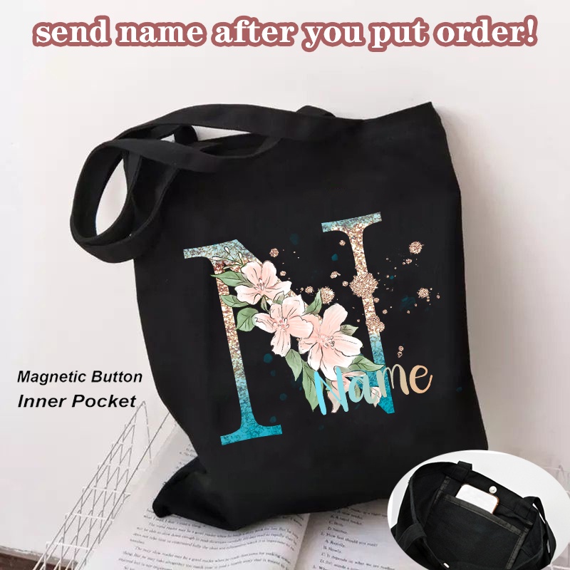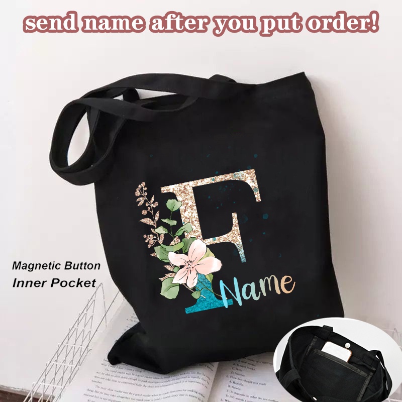 Custom Your Name Fashion Women Tote Bags Personalised Canvas Handbags Shoulder Bags with Button Birthday Gift