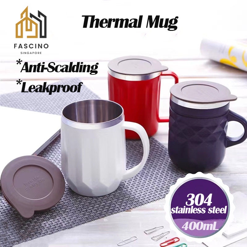 【SG】400ml Thermal Coffee Mug with Lid Vacuum Insulated Cup with Handle Stainless Steel