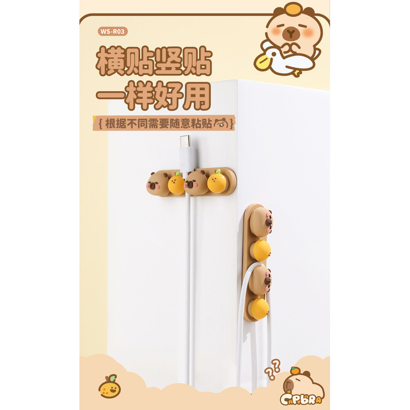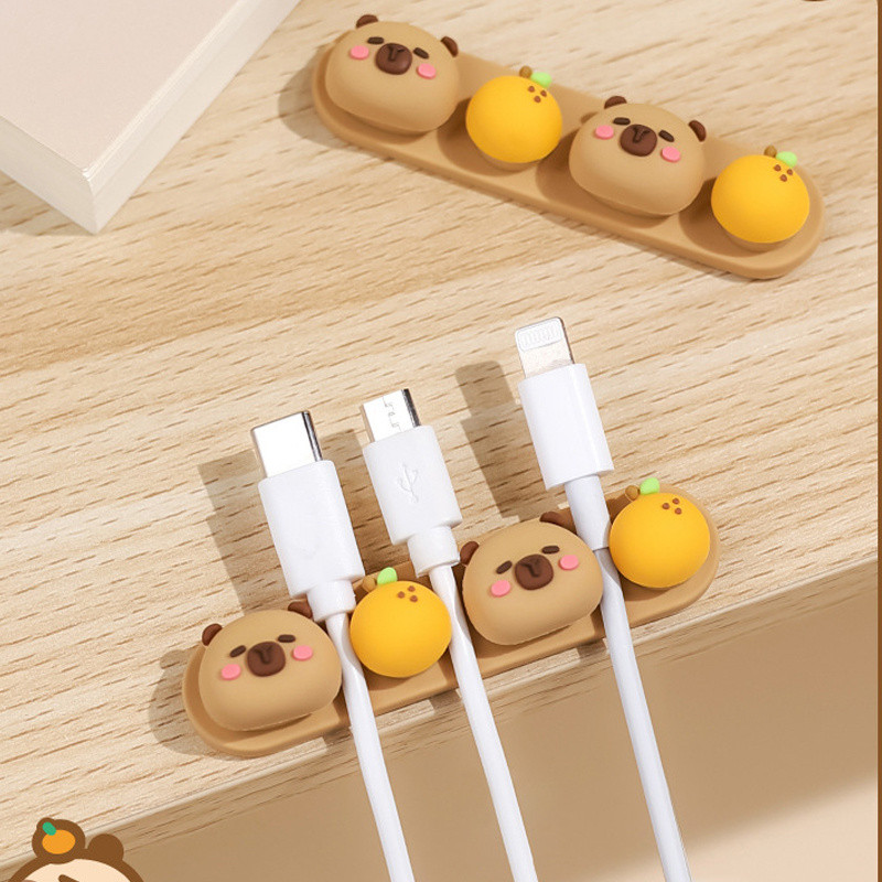 Cute Capybara Cable Organizer Silicone USB Cable Winder Flexible Cable Management Clips For Mouse Headphone Earphone Cable Holder