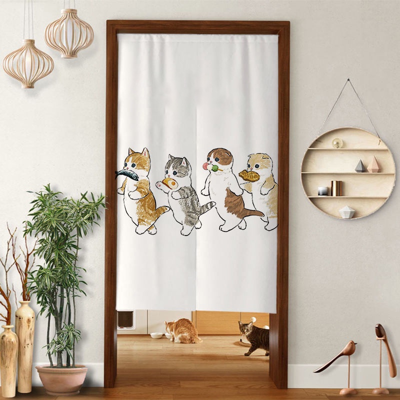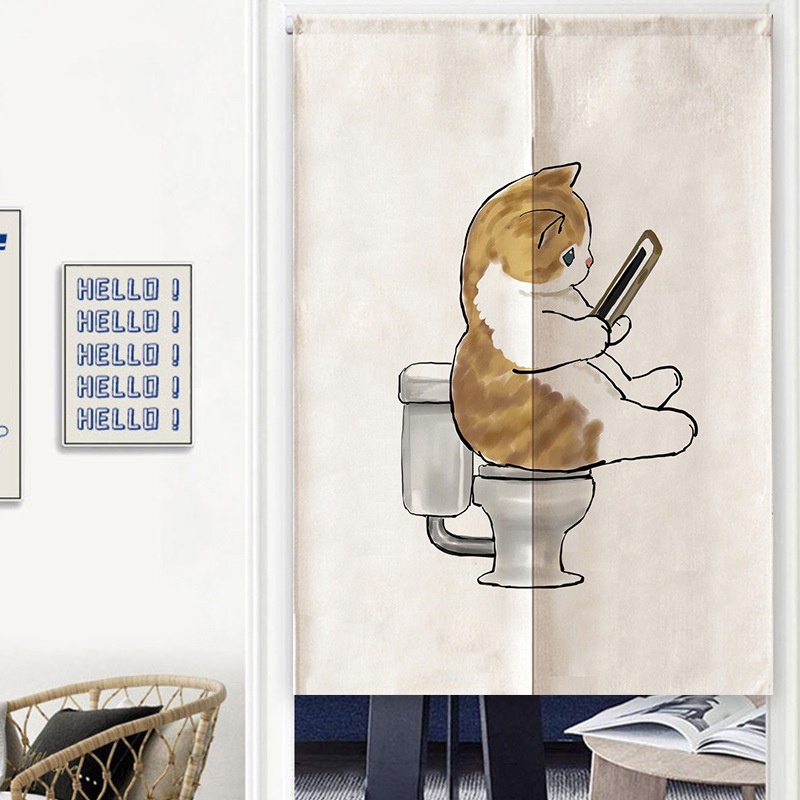 Cute Cat Door Curtain Kitchen Bathroom Half Curtains Home Decor
