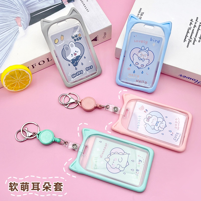 Cute Cat Ear Design Card Holder Photocard Case Nametag with Lanyard 7*11cm