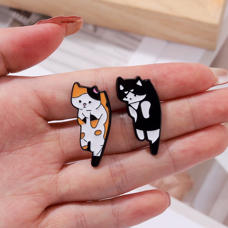 Cute Cat Enamel Pin Funny Cowardly Cat Brooch Badges Metal Lapel Pin Cartoon Animal Jewelry Gift for Friends Kids