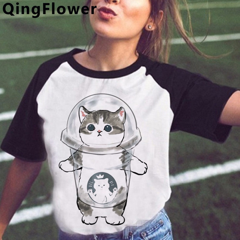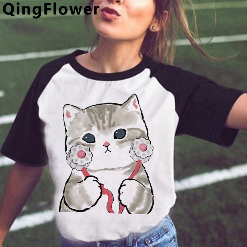 Cute Cat tshirt top tees women plus size print couple top tees couple clothes
