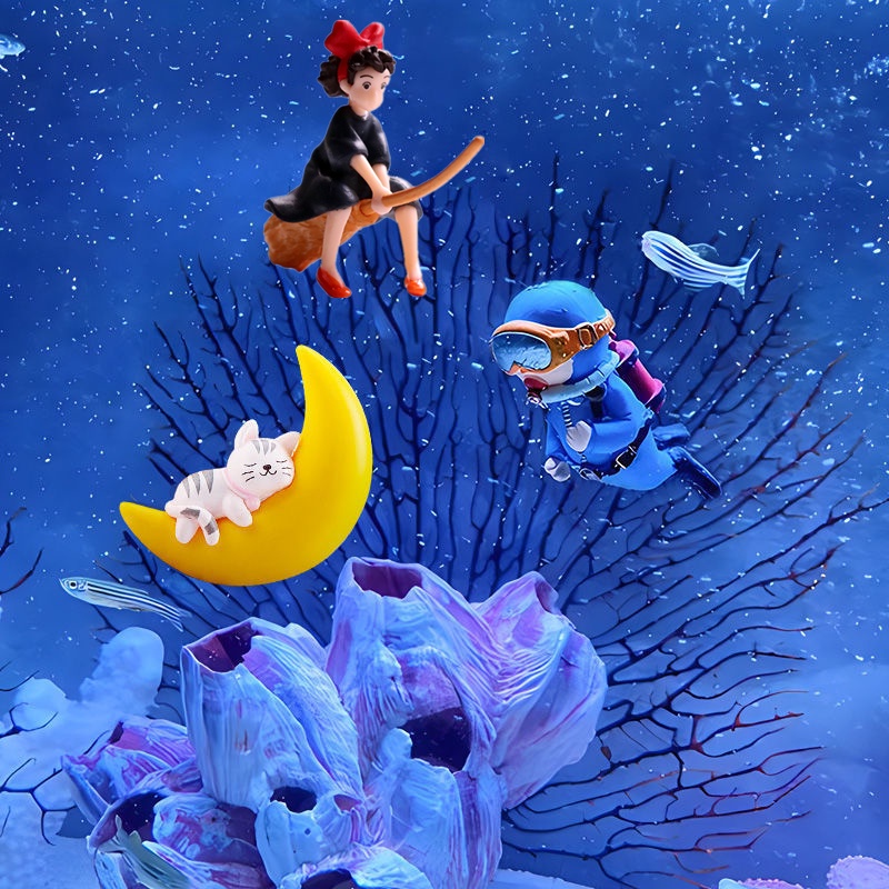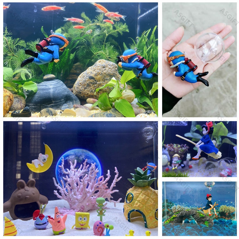 Cute Floating Aquarium Decoration Dragon Ball Wukong Diver Magic Fairy Moon Animal Figure Cartoon Fish Tank Ornament