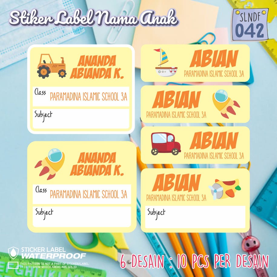 Cute Motif Class Name Sticker Label/Name Label Sticker | Waterproof Sticker | Children's Character Stickers