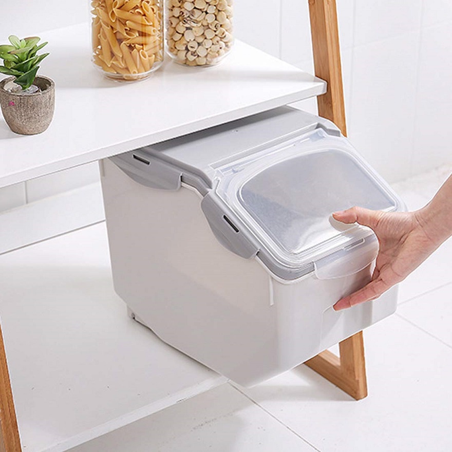 Cutiehaus Premier Quality 10kg Rice Storage Container Plastic Kitchen Rice Box Organizer With Wheels For Kitchen