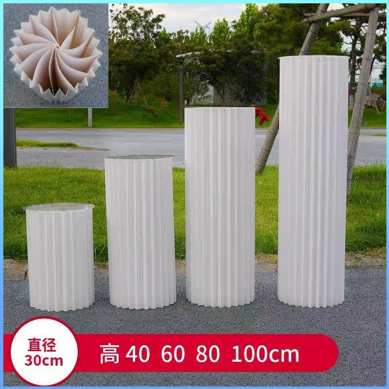 Cylinder Pedestal Stand Cylindrical Display Stand Foldable Round White Roman Column Cake Stand for Decorations Celebration