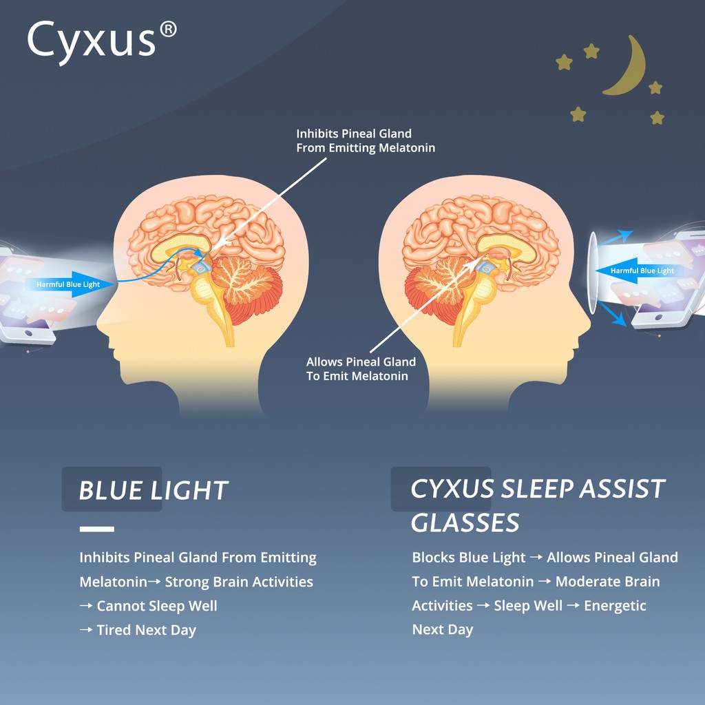 Cyxus New Sleep Assist Glasses Help Secretion of Melatonin UV420 Computer Glasses Comfortable Release Eye Fatigue Flexible Frame & Pale Gray Lenses Eyewear for Women Men 8283T02