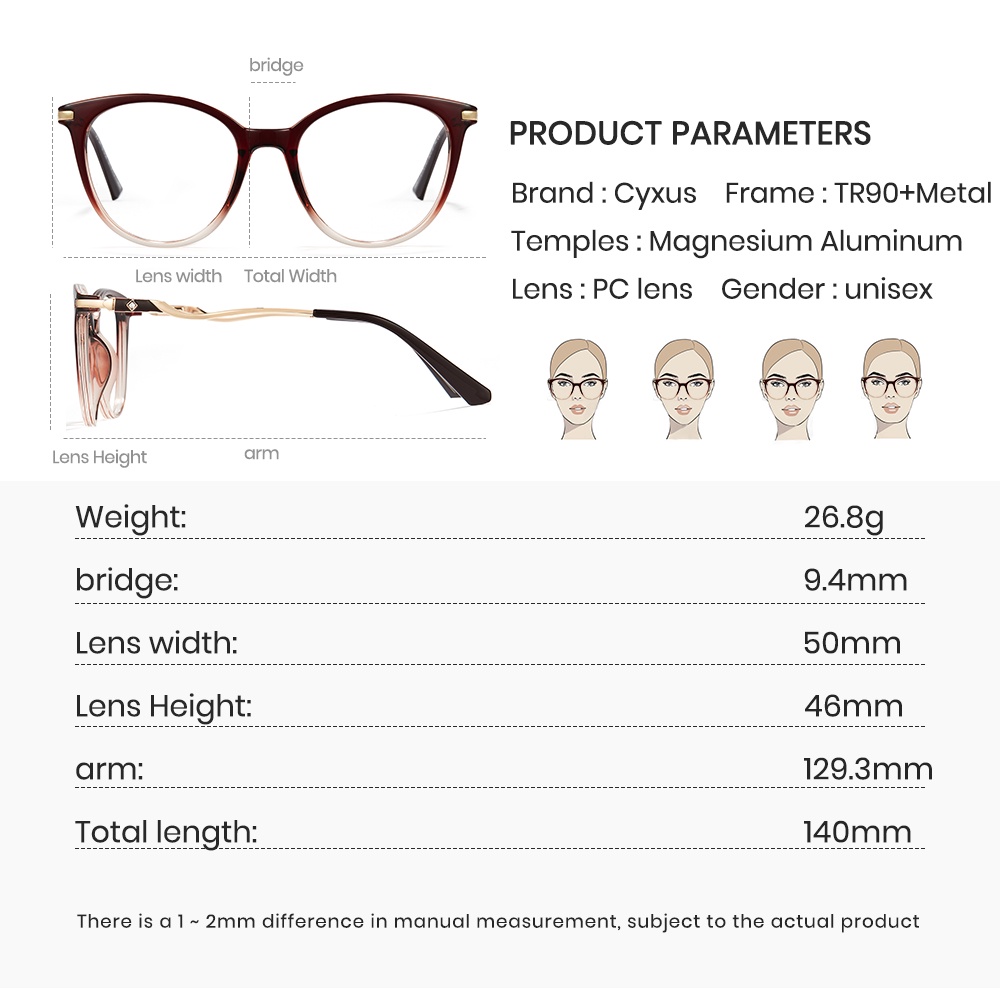 Cyxus Transparent Korean Round Rectangle Half Retro Frame Glasses For Womens Mens Blue Light Blocking Computer Eyeglasses Unisex