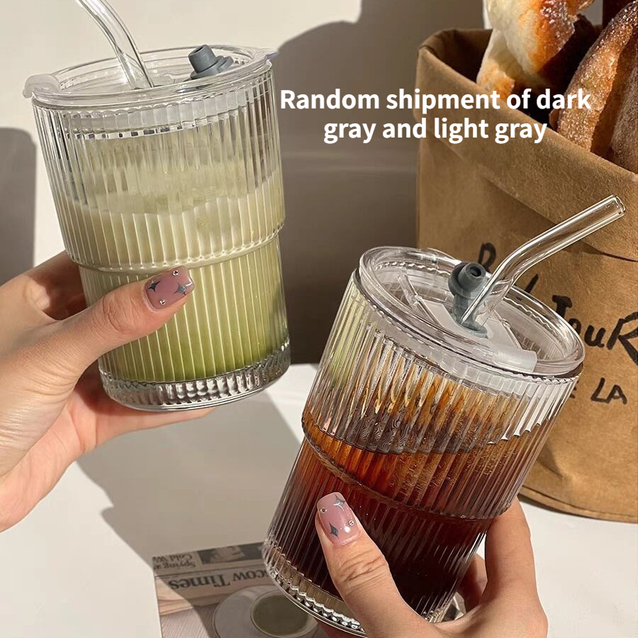 Vintage Vertical Striped Glass Cup, Durable Beverage Glass for Iced Coffee, Tea, and Milk