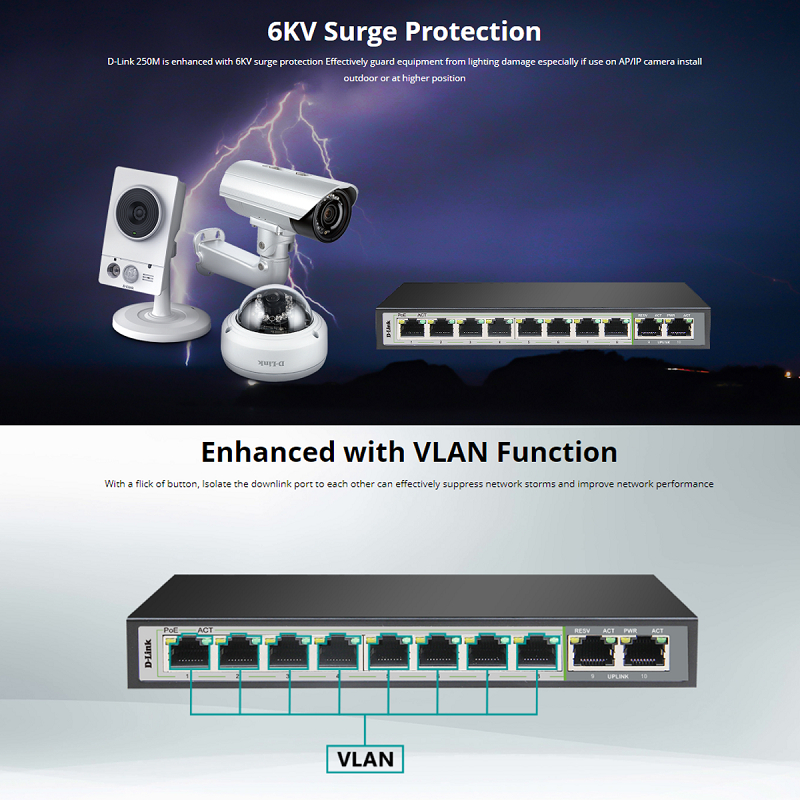 D-Link 10-Port Full Gigabit 8 Port PoE Switch with x2 Uplink Ports [Order Model:DGS-F1010P-E]