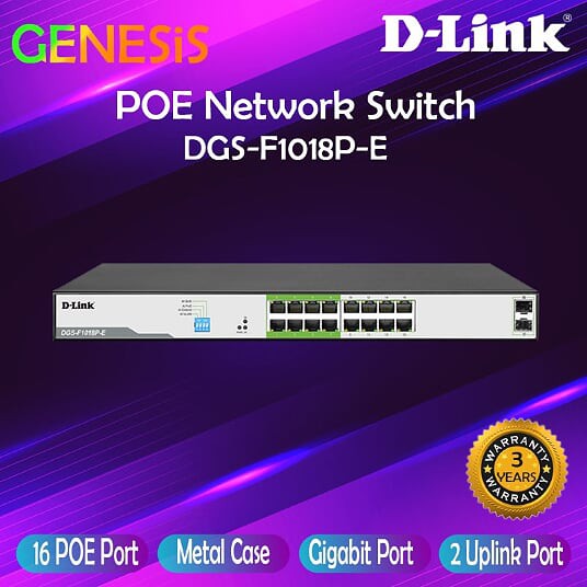 D-Link DGS-F1018P-E 250M 16 1000Mbps Gigabit PoE Network Switch with 2 SFP Ports