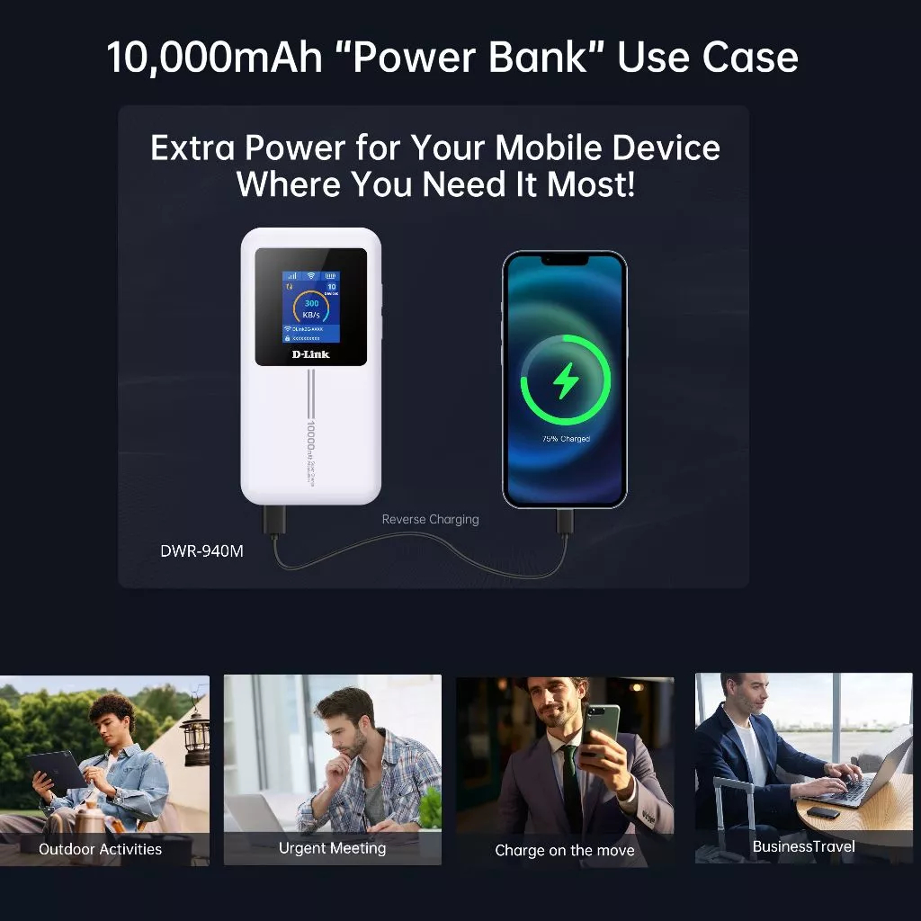 D-Link DWR-940M 4G Cat4 Wi-Fi Wireless 6 Mobile Hotspot with touchscreen | 10,000mAh Battery | up to 32 devices