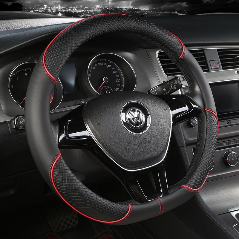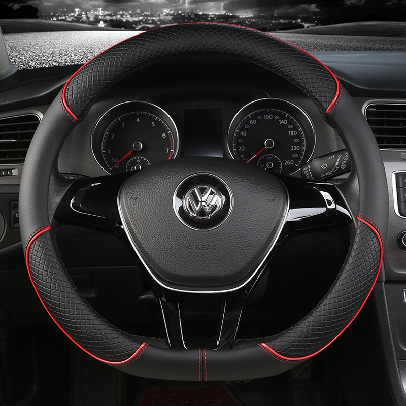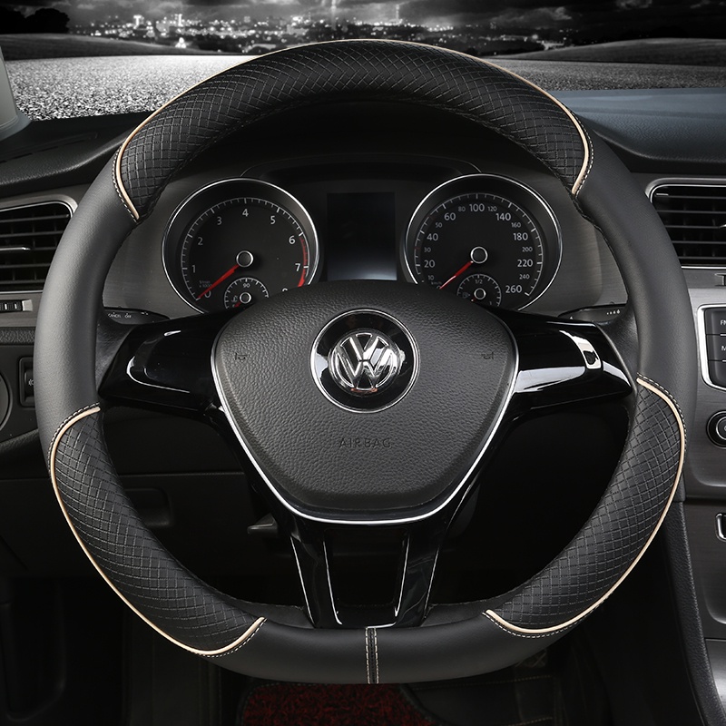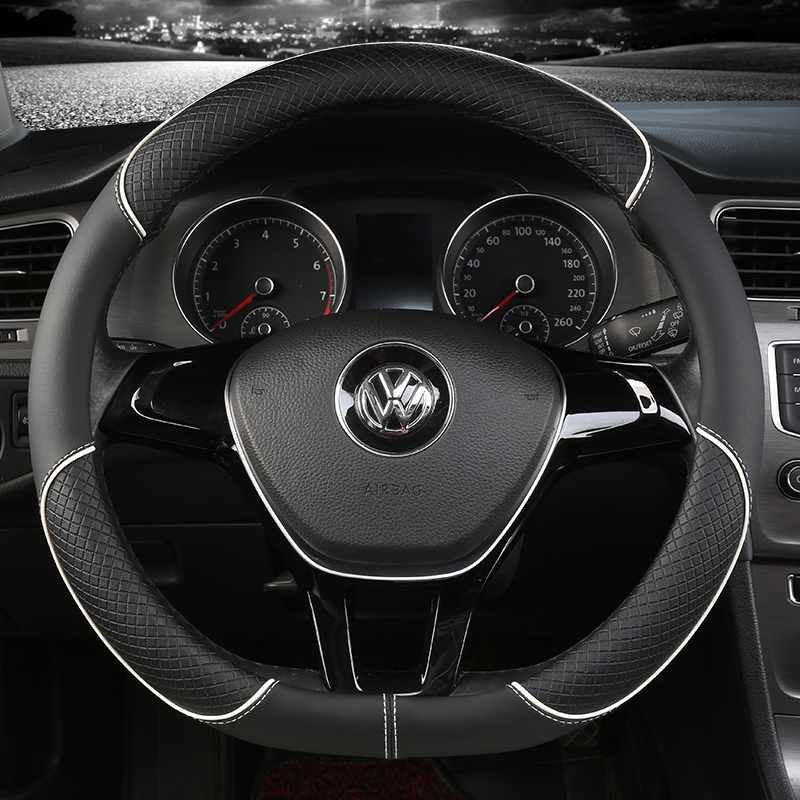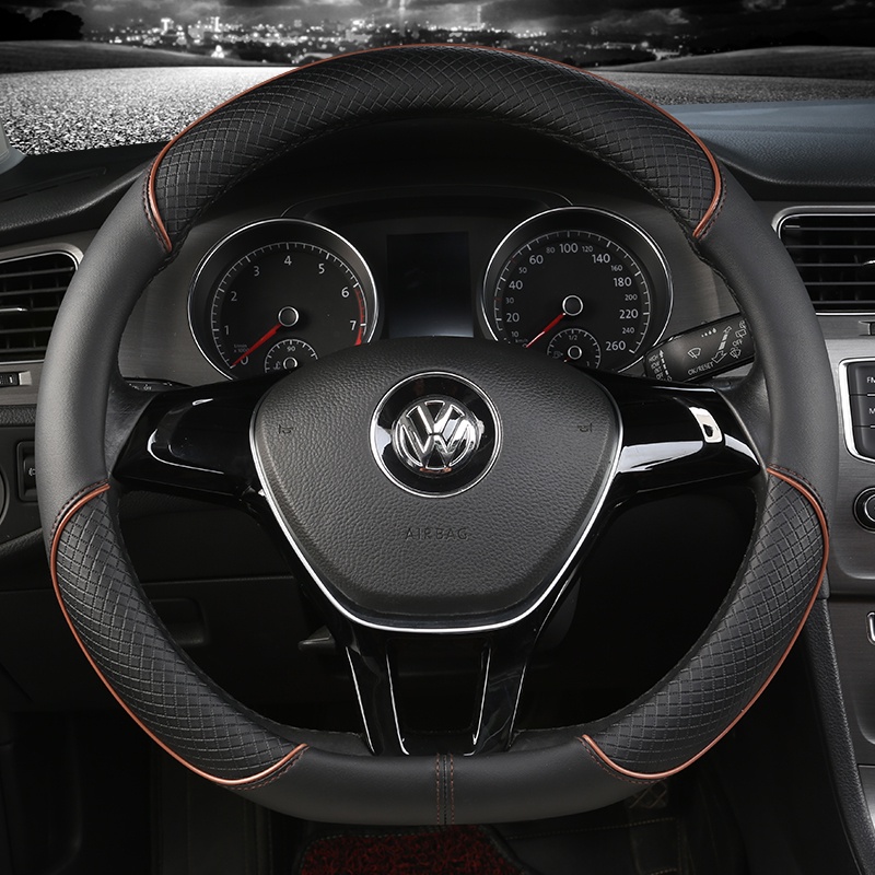 D Shape Leather Car Steering Wheel Cover Four Seasons 38CM Steering Wheel Hubs for VW GOLF 7 8 2015 POLO JATTA