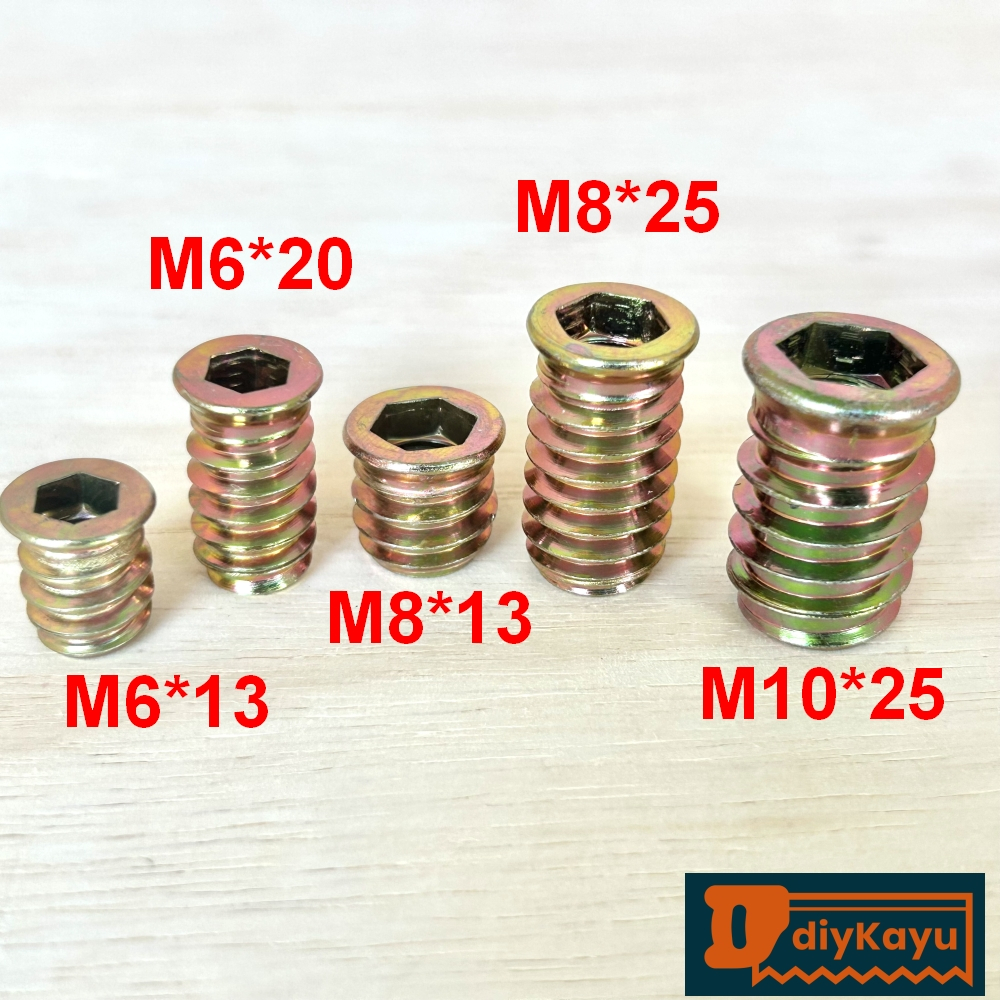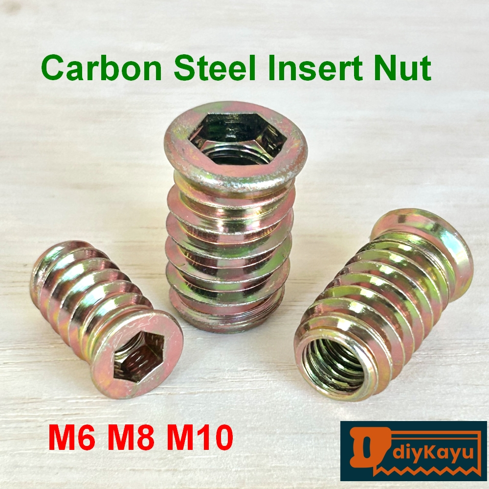 D-nut M6 M8 M10 Carbon Steel Threaded Insert Nut Flange Type D Hexagon Head Furniture Bolt Fastener Wood (1pcs)
