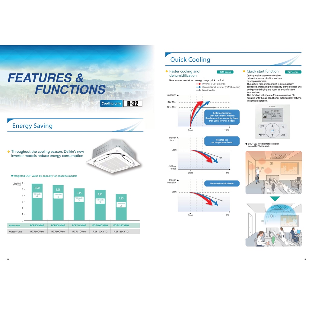 DAIKIN INVERTER R32 CEILING CASSETTE UNIT AIRCON INSTALLATION (18K BTU - 45K BTU)