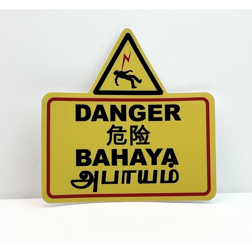 DANGER SIGN STICKER IN 4 LANGUAGES - 10 x 10cm