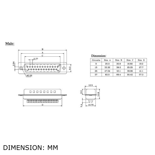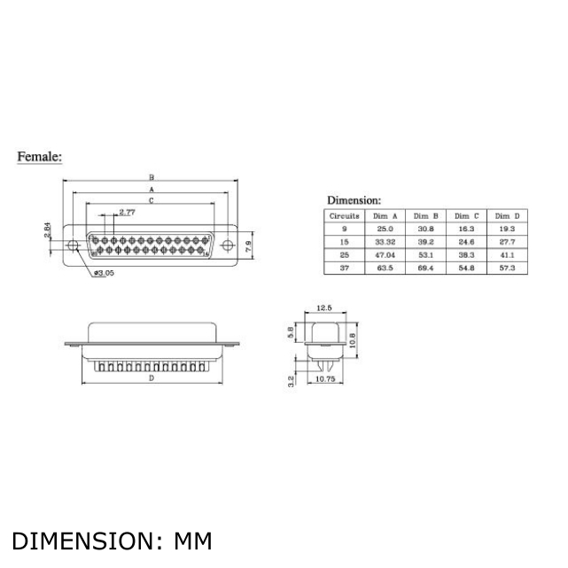 DB9 DB15 DB25 DB37 (2 Row) D-Sub D-Connector D Sub RS232 VGA Solder Type Connector (Female / Male)