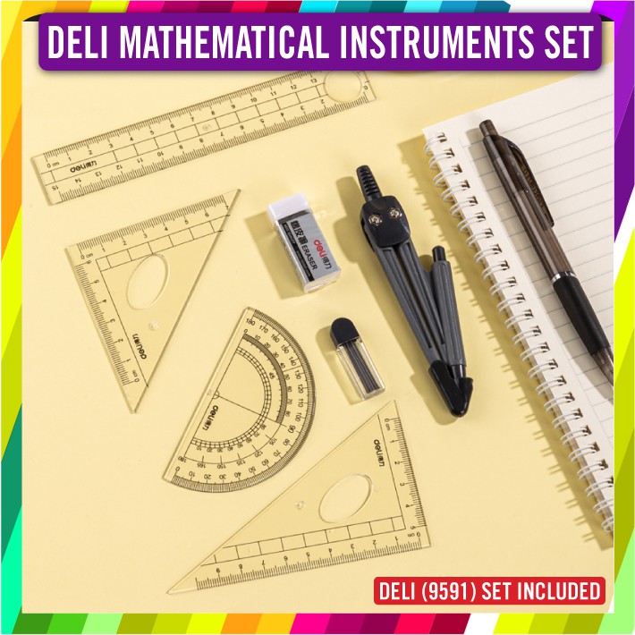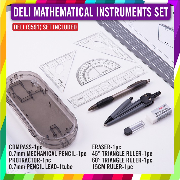 DELI MATHEMATICAL INSTRUMENTS SET / Drawing Compass Complete Math Tool Set (9591)