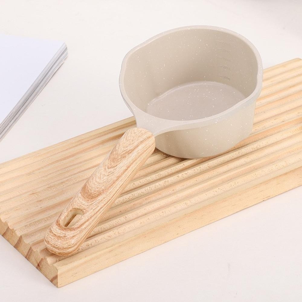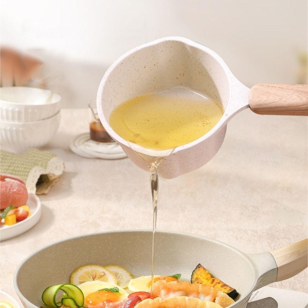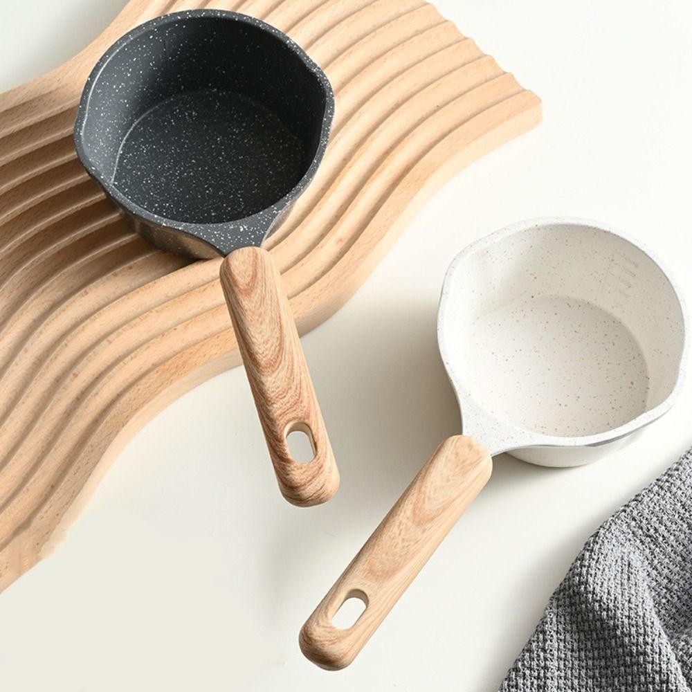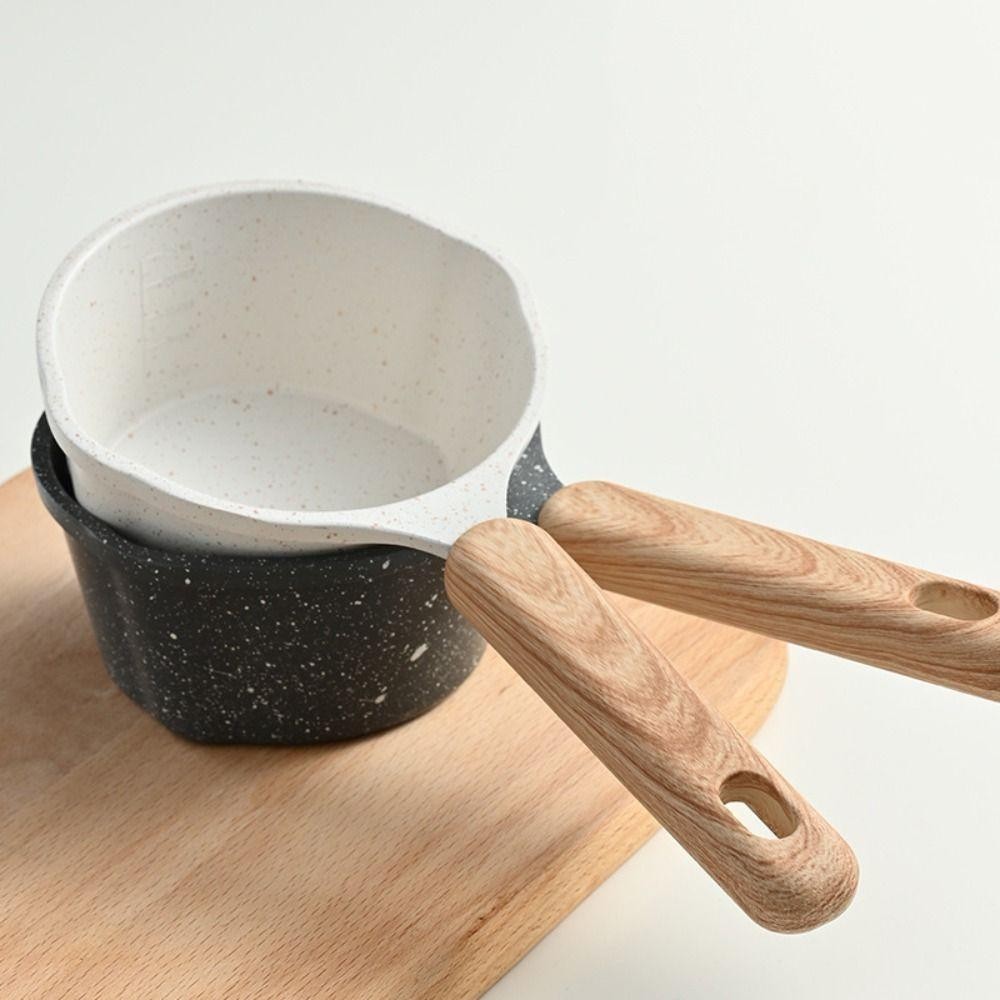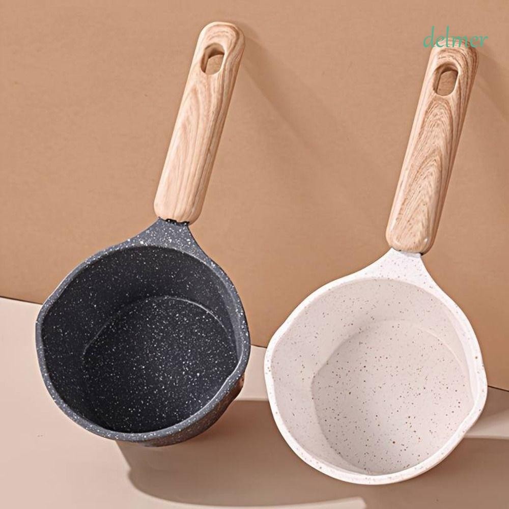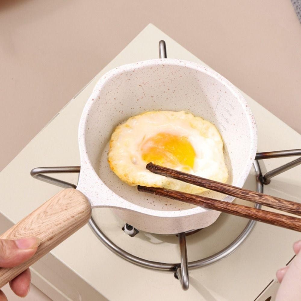 DELMER Oil Splashing Pot, with Scale Non-stick Maifan Stone Skillet, Frying Pan Wood Handle Mini Milk Pot Fried Egg