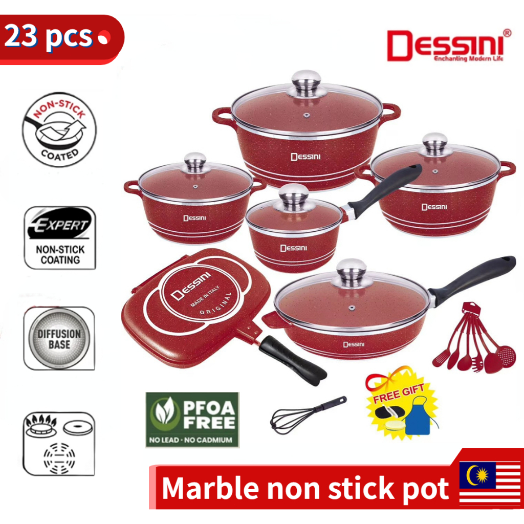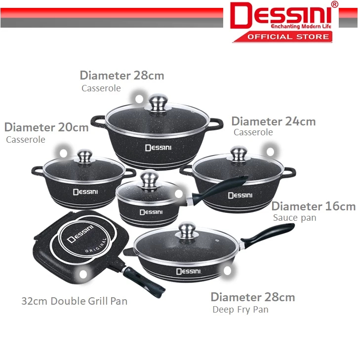 DESSINI ITALY Granite Aluminium Non Stick Casserole Pot Bowl Deep Fry Pan Cookware Tool (23 Pcs)