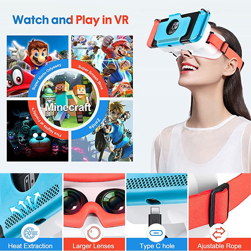 DEVASO NEW VR Glasses For Nintendo Switch OLED 3D Glasses Virtual Reality Movies For Switch Game Headset Adjustable Big Lens