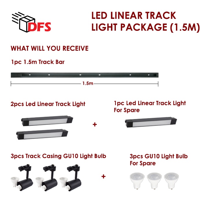 DFS LED LIGHT LED Linear Track Light 2pcs with Track Light 3 pcs 1.5m Track Complete Set