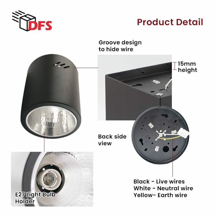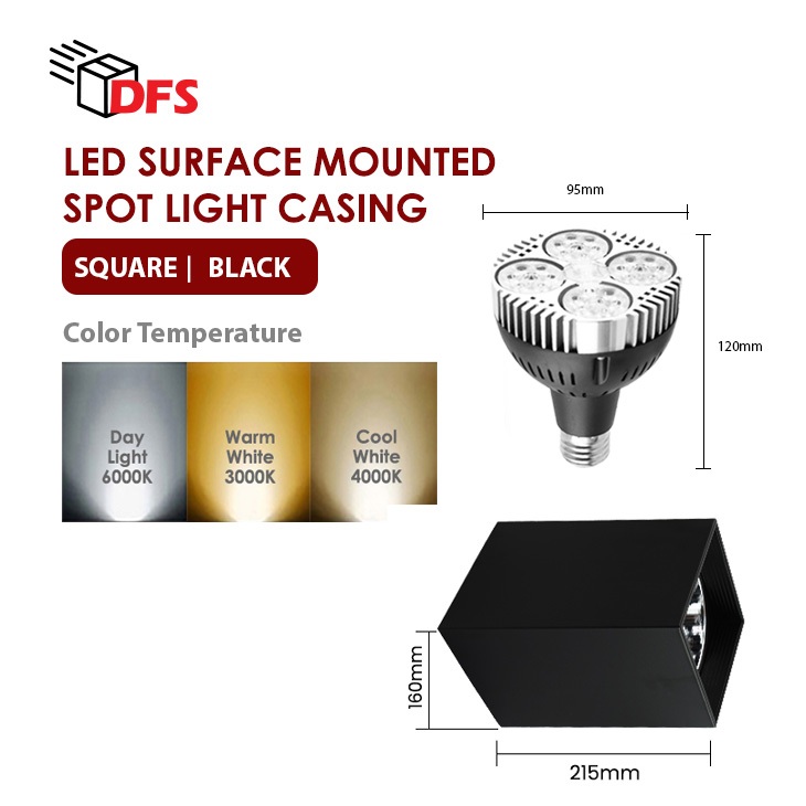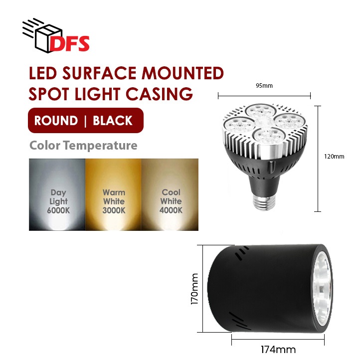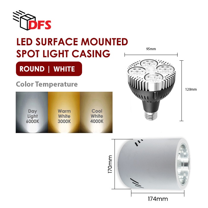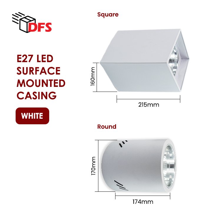 DFS LED Surface Mount Casing 170MM With E27 Holder - E27 PAR30 20W Bulb