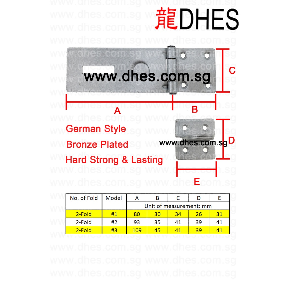 DHES Hasp and Staple Single Hinge Double Hinge Safety Hasp Made in Thailand