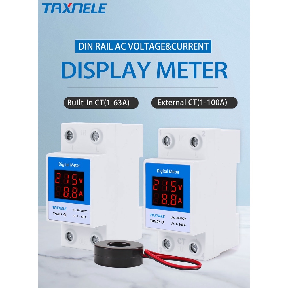 DIN Rail Led Digital Voltmeter Ammeter AC 50-500V 220V 380V 1-63A 1-100A Panel Voltage Current Meter Volt Amp Tester Detector