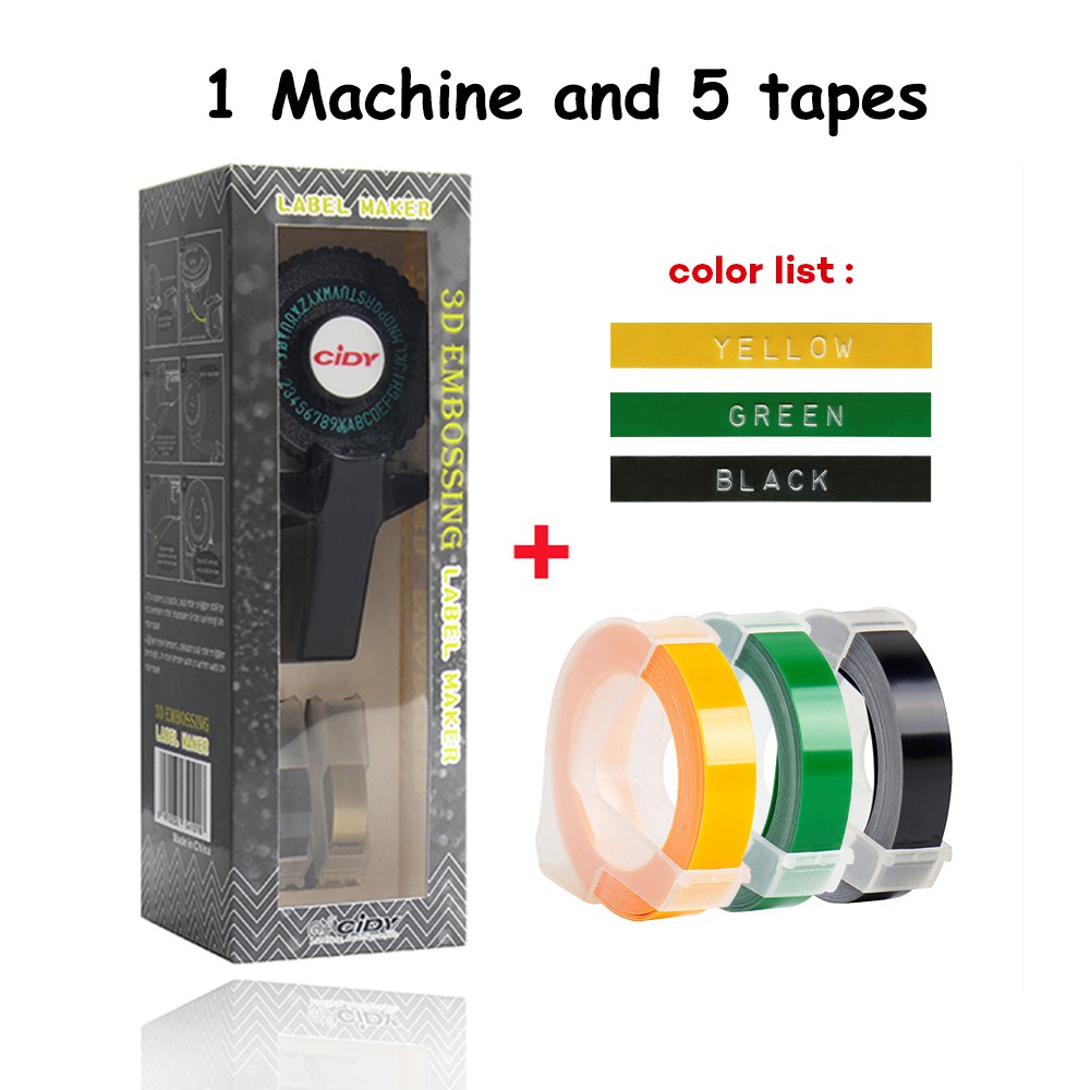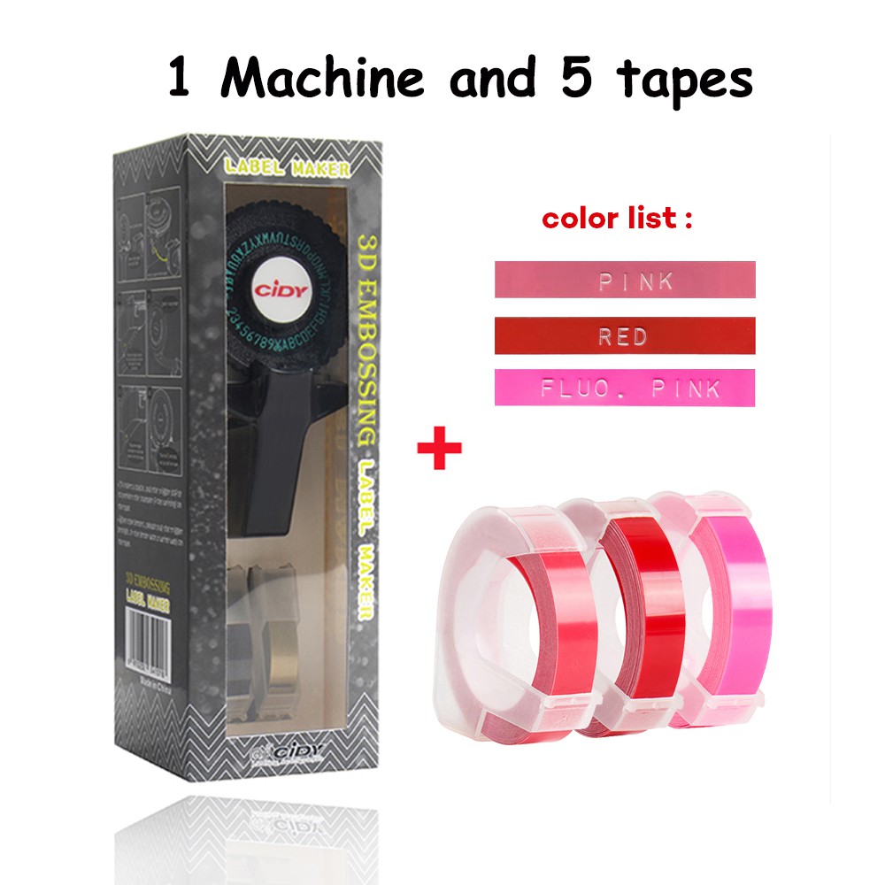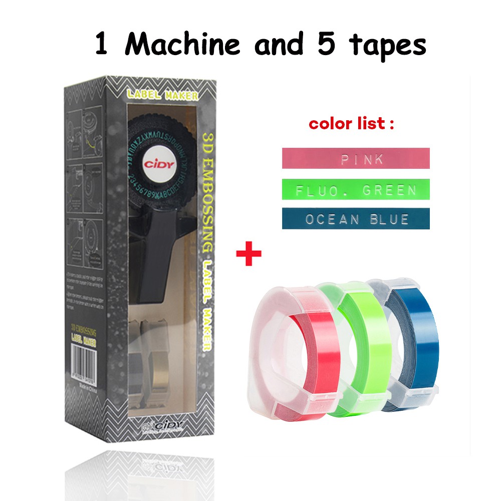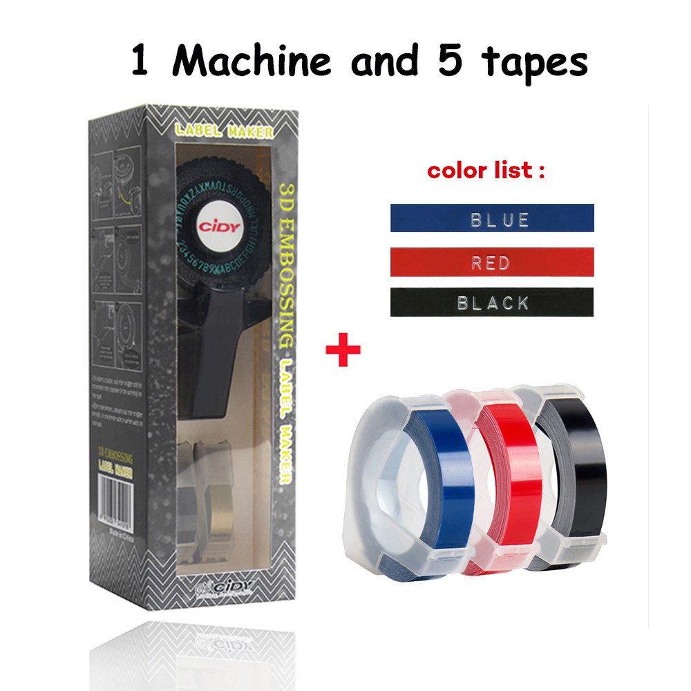 DIY Mini Portable Manual Label Maker with 5 Rolls Refill tape Plastic PVC 9mm Label Tapes for Motex 3D Embossing Label Printer Writer Typewriter Machine