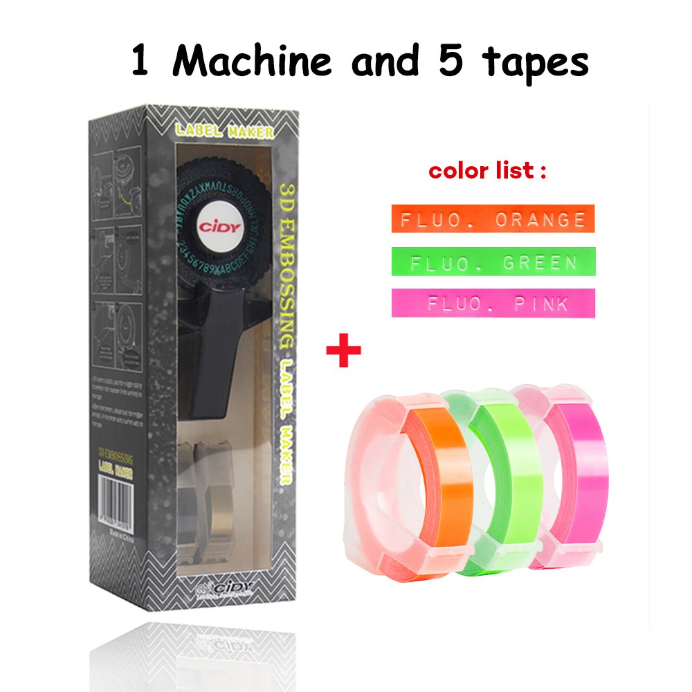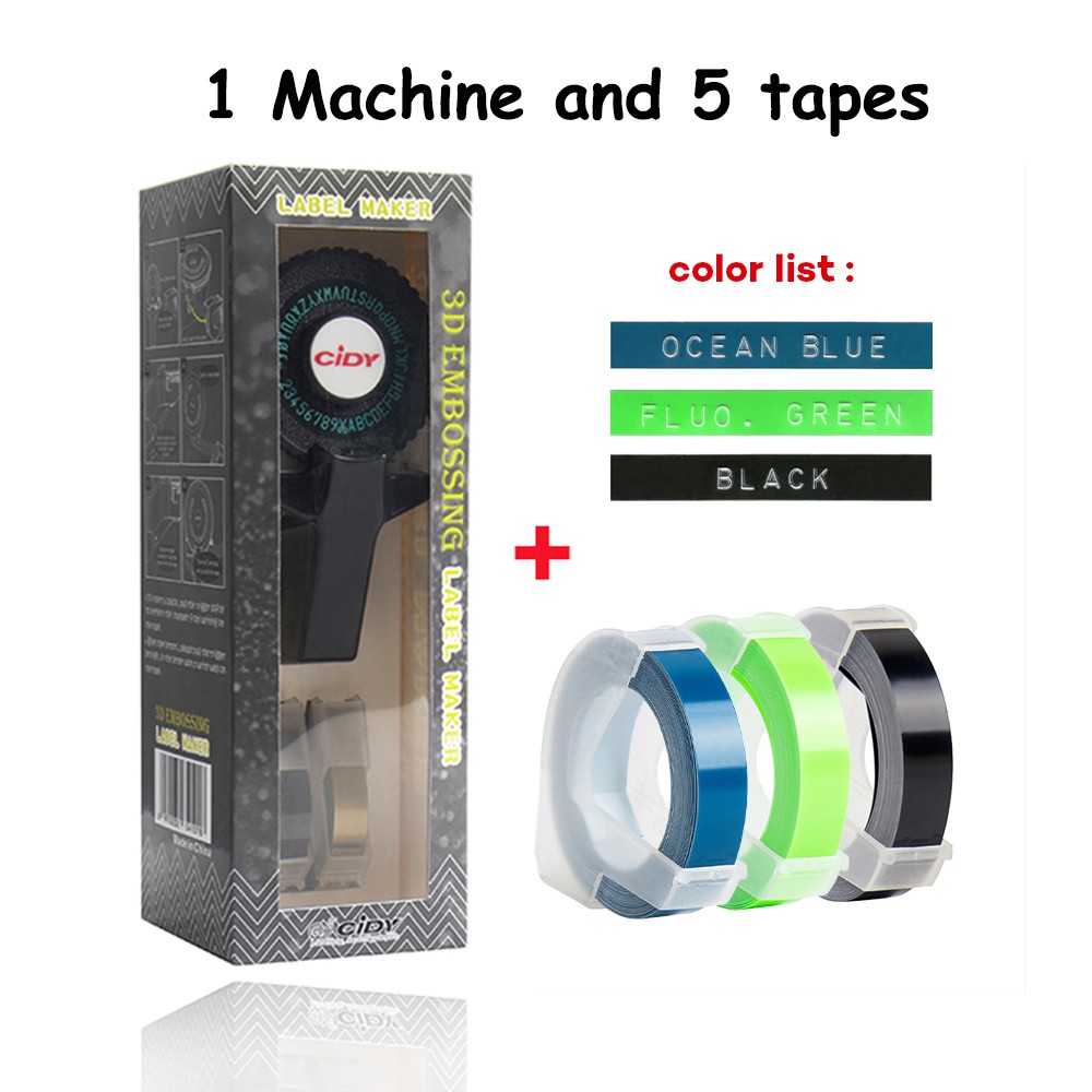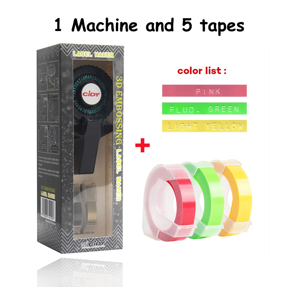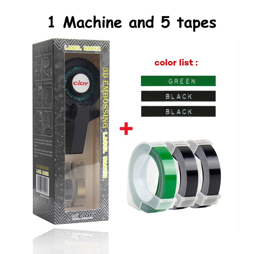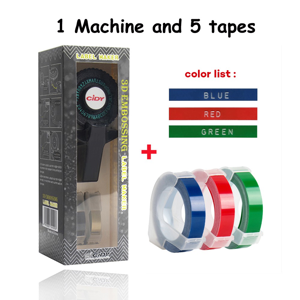 DIY Mini Portable Manual Label Maker with 5 Rolls Refill tape Plastic PVC 9mm Label Tapes for Motex 3D Embossing Label Printer Writer Typewriter Machine