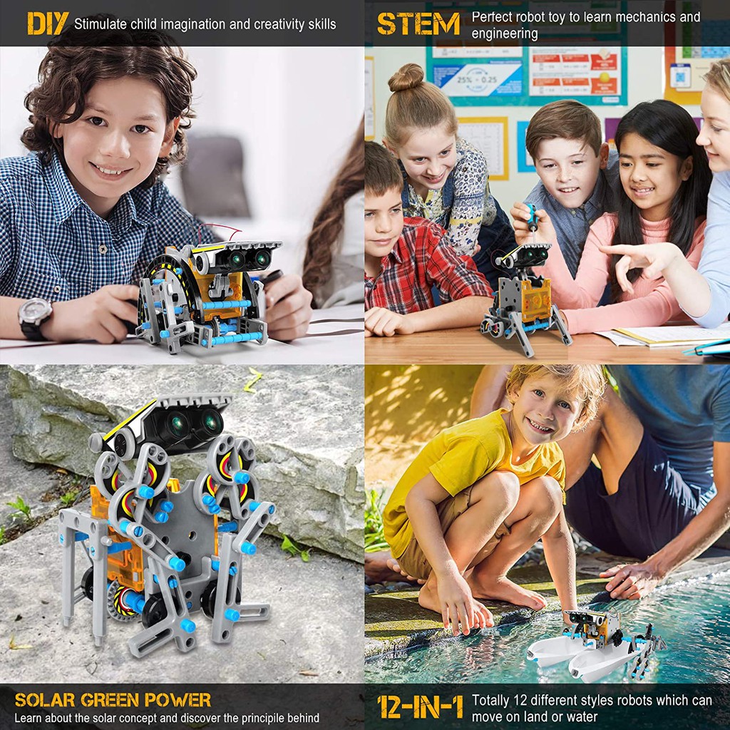 DIY Robotics Kit - 12-in-1 Solar-Powered STEM Learning Toy for Kids Age 8+