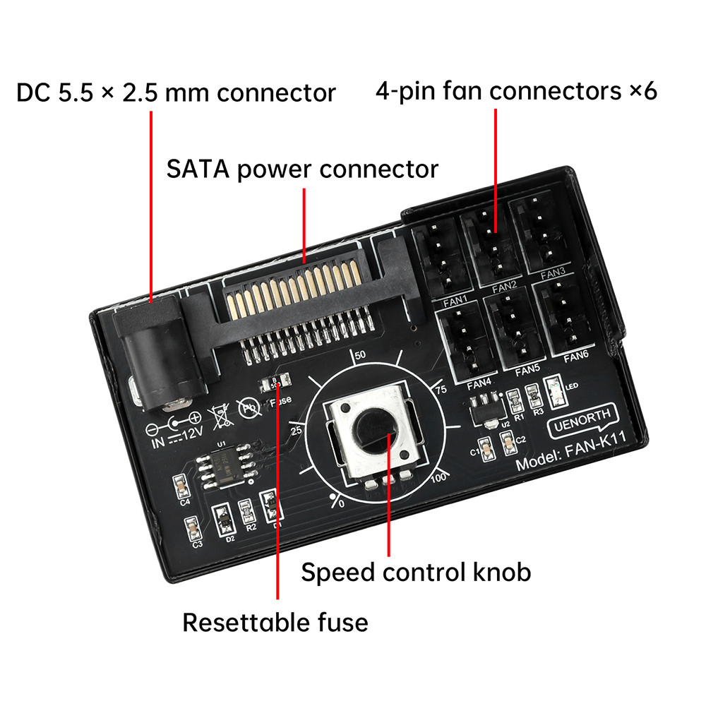 DIYMORE Computer Fan Speed Controller 60W High-Power Hub Controller Four-Wire Fan PWM Speed Control