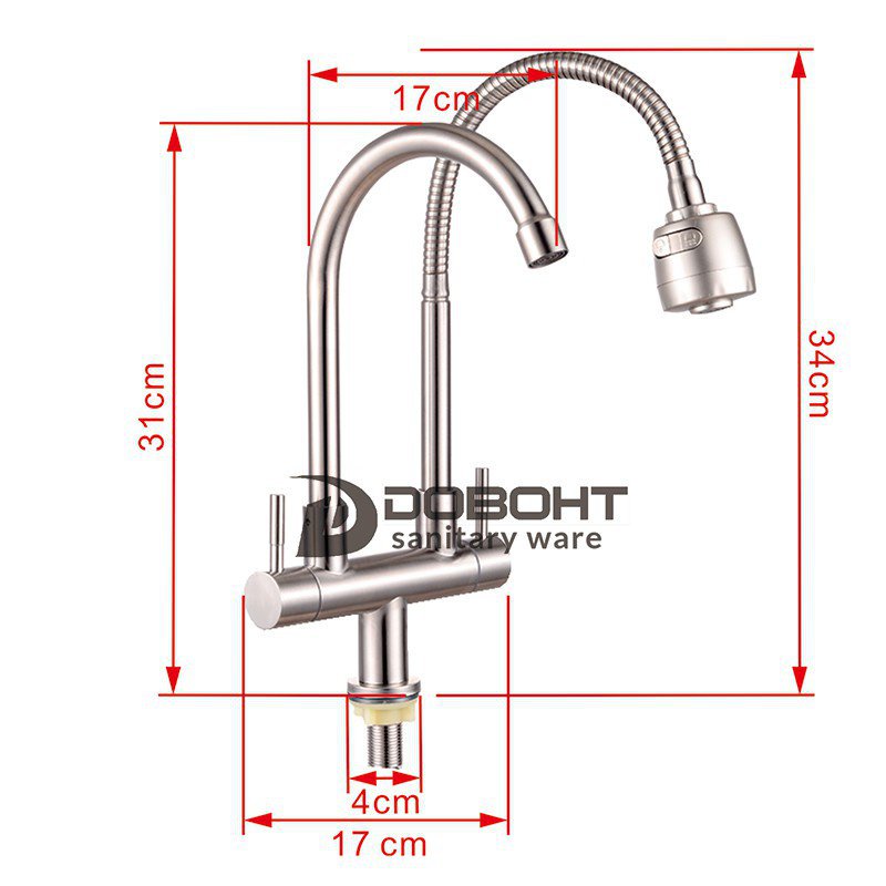 DOBOHT Stainless Steel Single Cold Water Tap Double Dual Spout Kitchen Faucet CT0089SS