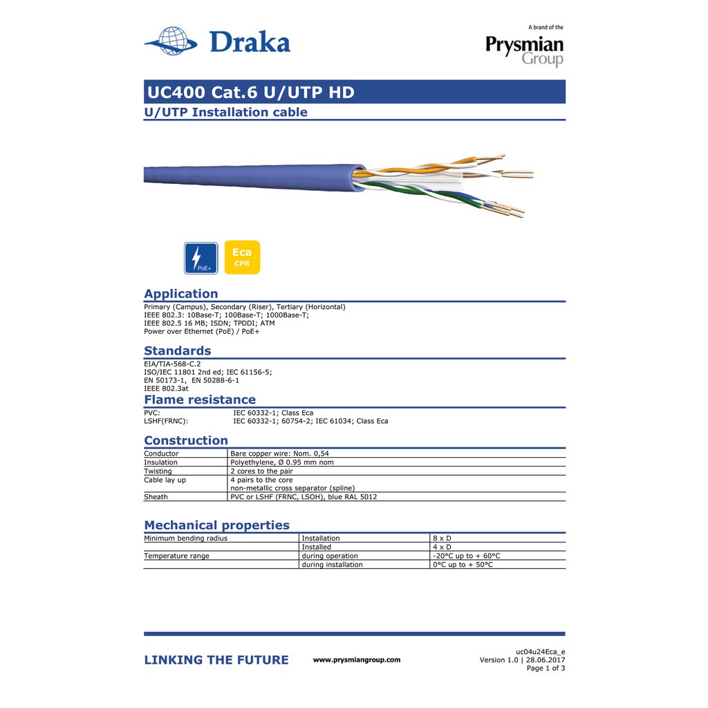 DRAKA CATEGORY 6 CABLE FOR CCTV AND NETWORKING (305M/DRUM)