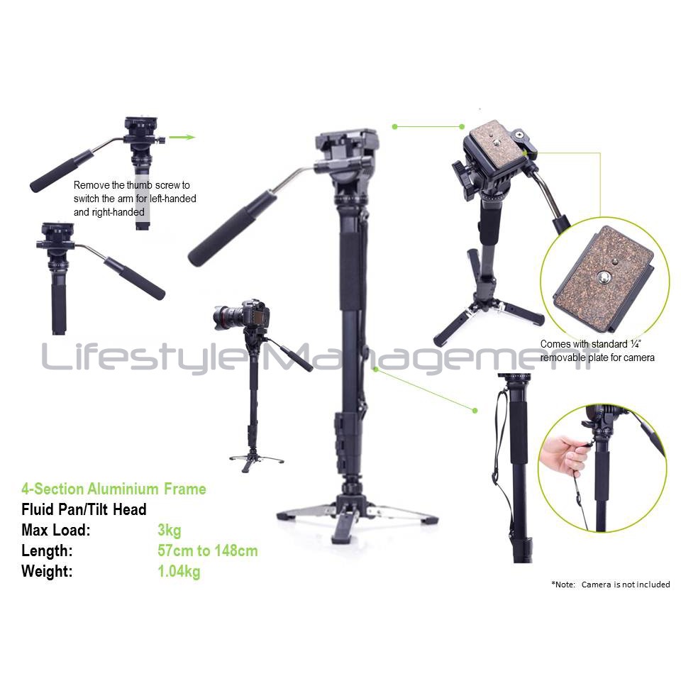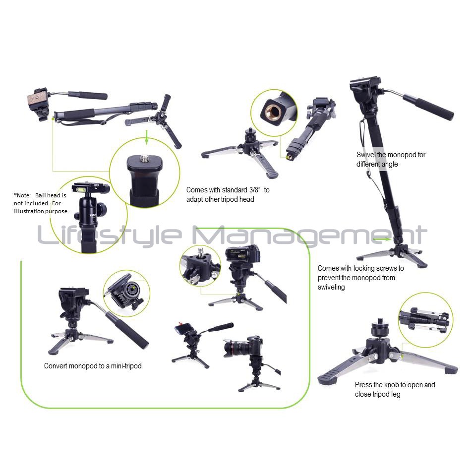 DSLR Camera Photo/Video Monopod Fluid Damping Pan/Tilt Head Swivel