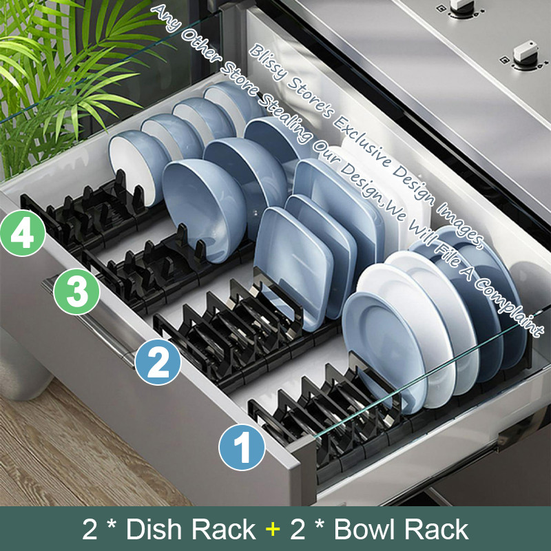 DUOZAN Plate Organiser Dish Bowl Plate Rack Plate Holder Kitchen Drawer Organiser Cabinet Organizer