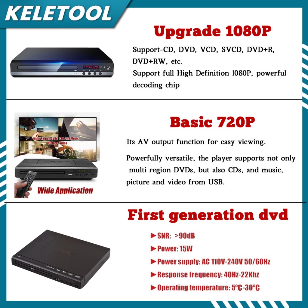 DVD Player Portable Theatre System Remote Control Kpop Wall Mounted USB Multiple Playback VCD ADH CD 4in1